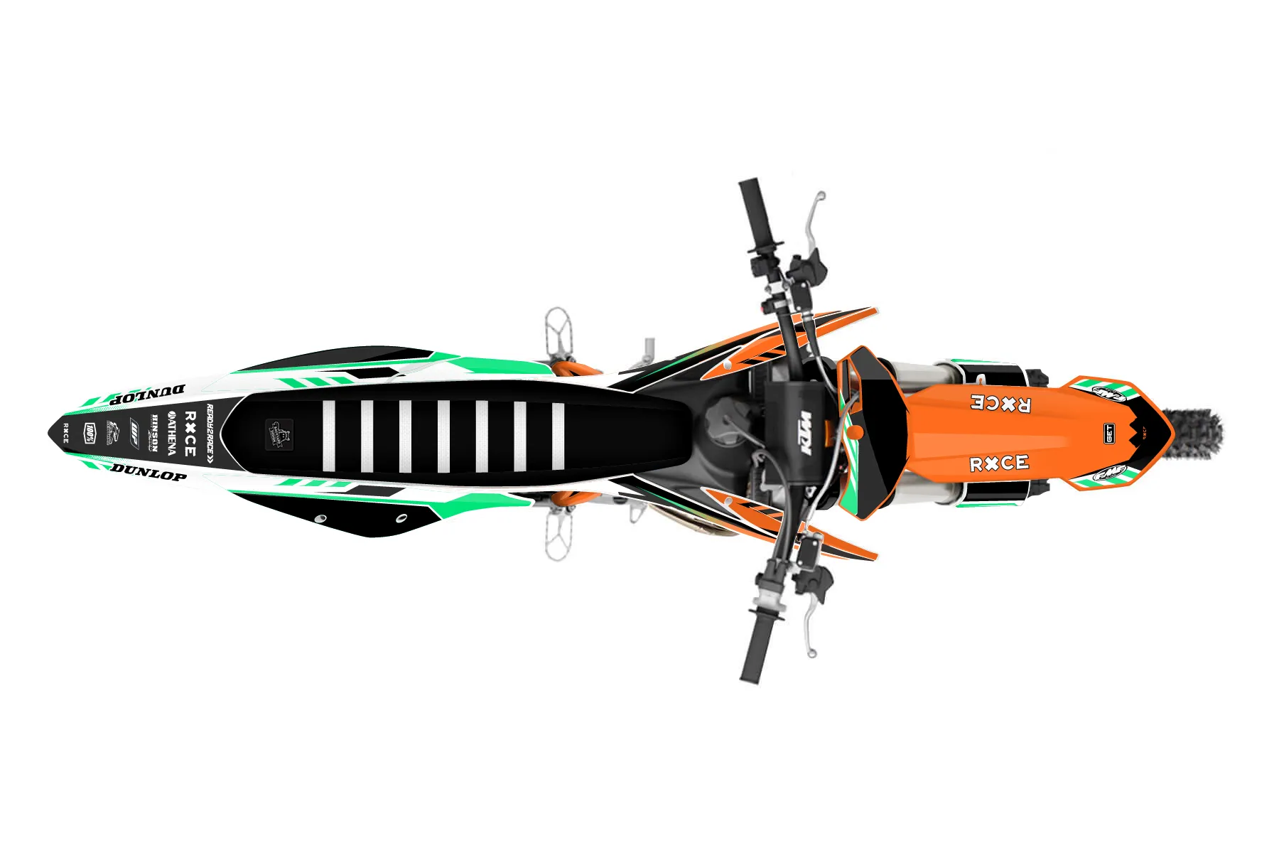 «Future» — готовый комплект графики серии Maverick для KTM MX Graphic Kit KTM SX 150 2019. В комплекте: графика на бак и боковые облицовки, крылья (переднее и заднее), передний щиток, номерные таблички, защита вилки. Материал: ПВХ-винил 80 мкр с холодной ламинацией 300 мкр, общая толщина 380 мкр; покрытие глянцевое или матовое на выбор. Устойчив к UV-излучению, воде, бензину и мойке высокого давления. Клей акриловый на сольвентной основе — постоянный, для гибких пластиков. На простых поверхностях монтируется без нагрева; для сложных изгибов рекомендуем фен. Этот пресет можно заказать как есть или взять за основу в конструкторе: поменять цвета, добавить стартовый номер и свой бренд. Производство — 3–5 рабочих дней, доставка по России СДЭКом или Почтой, по СНГ — курьерскими службами.