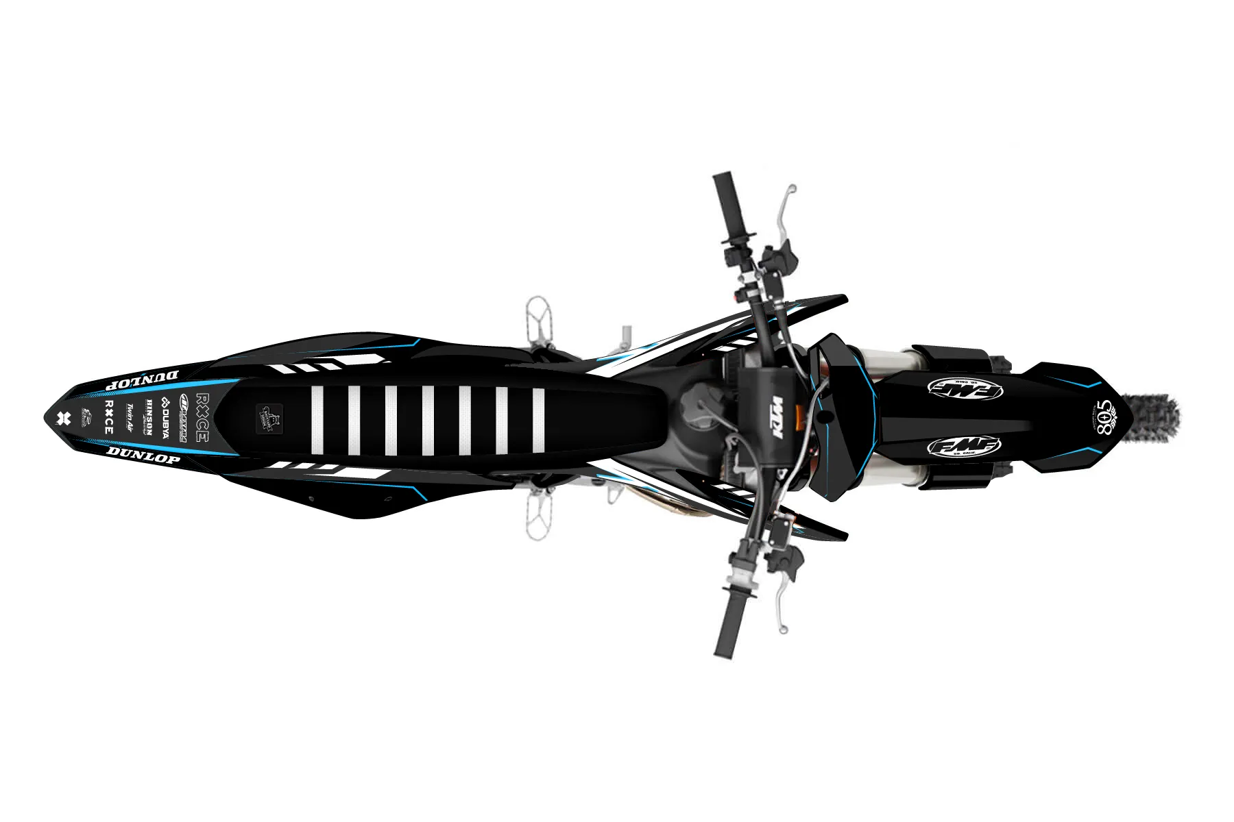 «Ktm125» — готовый комплект графики серии Maverick для KTM MX Graphic Kit KTM SX 150 2019. В комплекте: графика на бак и боковые облицовки, крылья (переднее и заднее), передний щиток, номерные таблички, защита вилки. Материал: ПВХ-винил 80 мкр с холодной ламинацией 300 мкр, общая толщина 380 мкр; покрытие глянцевое или матовое на выбор. Устойчив к UV-излучению, воде, бензину и мойке высокого давления. Клей акриловый на сольвентной основе — постоянный, для гибких пластиков. На простых поверхностях монтируется без нагрева; для сложных изгибов рекомендуем фен. Этот пресет можно заказать как есть или взять за основу в конструкторе: поменять цвета, добавить стартовый номер и свой бренд. Производство — 3–5 рабочих дней, доставка по России СДЭКом или Почтой, по СНГ — курьерскими службами.
