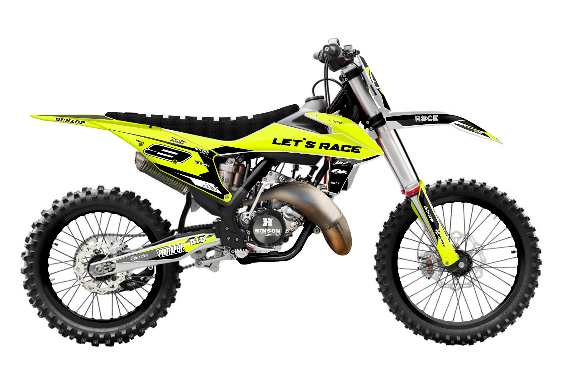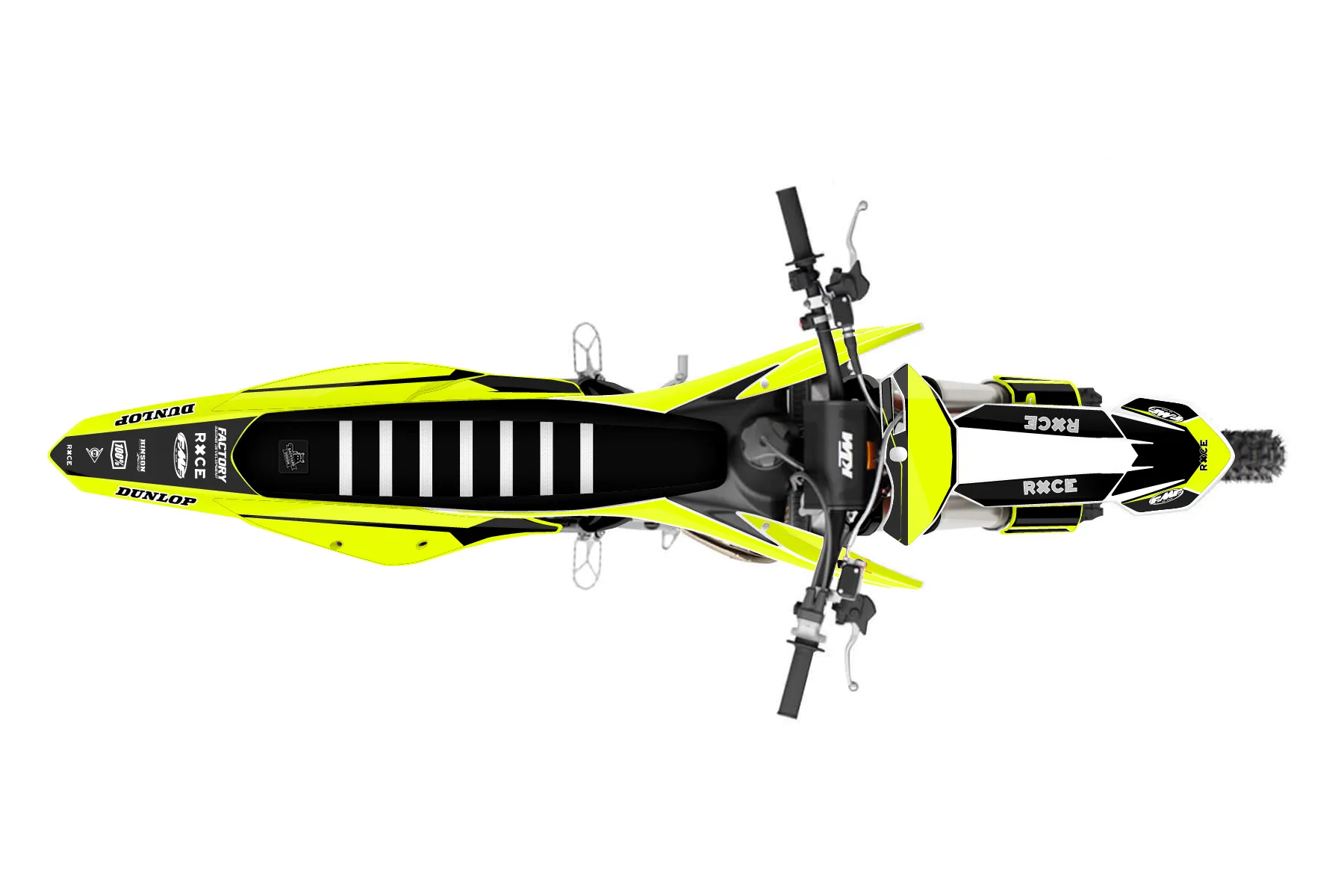 «Ryder Neon» — готовый комплект графики серии Maverick для KTM MX Graphic Kit KTM SX 150 2019. В комплекте: графика на бак и боковые облицовки, крылья (переднее и заднее), передний щиток, номерные таблички, защита вилки. Материал: ПВХ-винил 80 мкр с холодной ламинацией 300 мкр, общая толщина 380 мкр; покрытие глянцевое или матовое на выбор. Устойчив к UV-излучению, воде, бензину и мойке высокого давления. Клей акриловый на сольвентной основе — постоянный, для гибких пластиков. На простых поверхностях монтируется без нагрева; для сложных изгибов рекомендуем фен. Этот пресет можно заказать как есть или взять за основу в конструкторе: поменять цвета, добавить стартовый номер и свой бренд. Производство — 3–5 рабочих дней, доставка по России СДЭКом или Почтой, по СНГ — курьерскими службами.