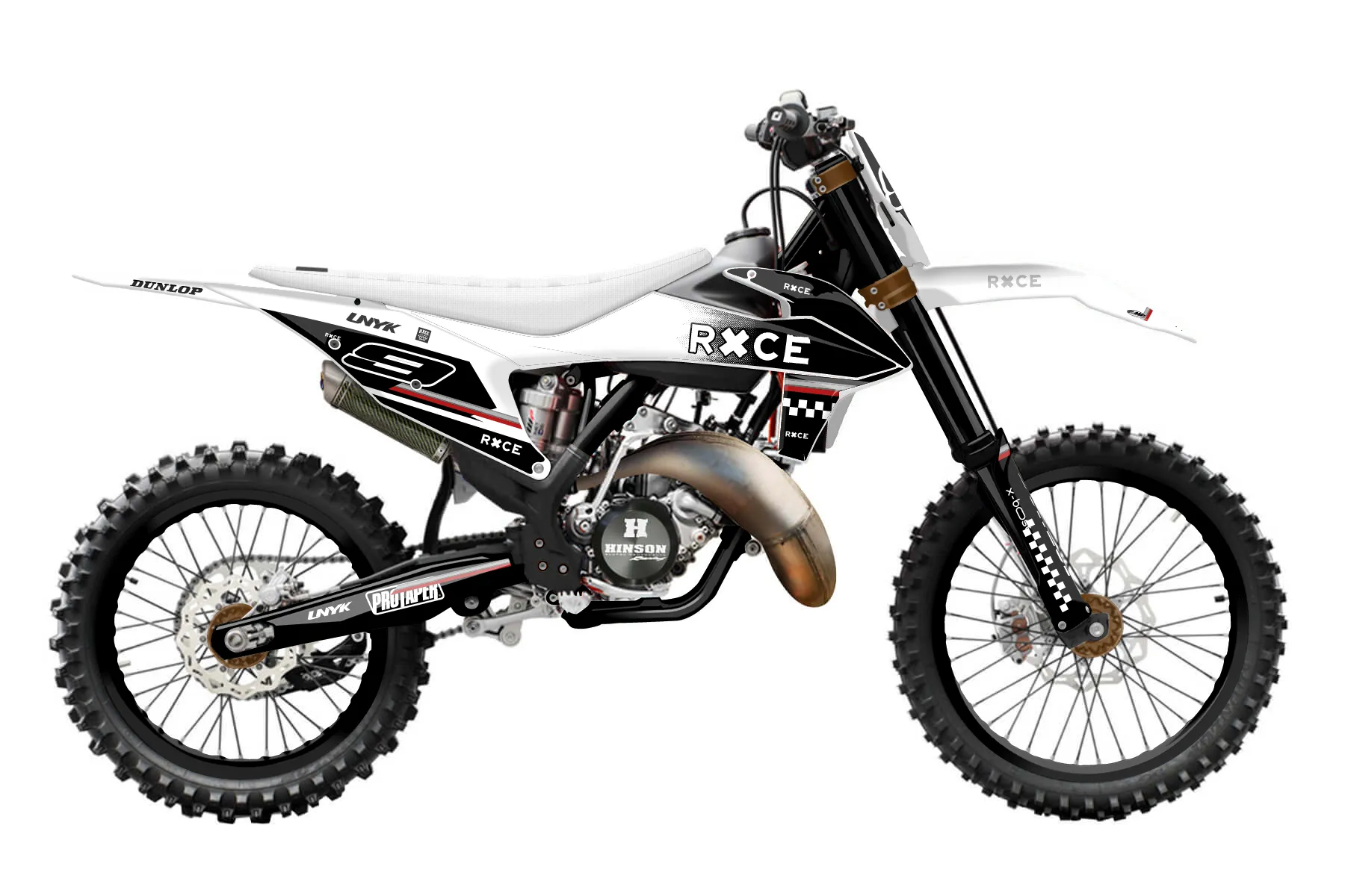 «Speedy» — готовый комплект графики серии Maverick для KTM MX Graphic Kit KTM SX 150 2019. В комплекте: графика на бак и боковые облицовки, крылья (переднее и заднее), передний щиток, номерные таблички, защита вилки. Материал: ПВХ-винил 80 мкр с холодной ламинацией 300 мкр, общая толщина 380 мкр; покрытие глянцевое или матовое на выбор. Устойчив к UV-излучению, воде, бензину и мойке высокого давления. Клей акриловый на сольвентной основе — постоянный, для гибких пластиков. На простых поверхностях монтируется без нагрева; для сложных изгибов рекомендуем фен. Этот пресет можно заказать как есть или взять за основу в конструкторе: поменять цвета, добавить стартовый номер и свой бренд. Производство — 3–5 рабочих дней, доставка по России СДЭКом или Почтой, по СНГ — курьерскими службами.