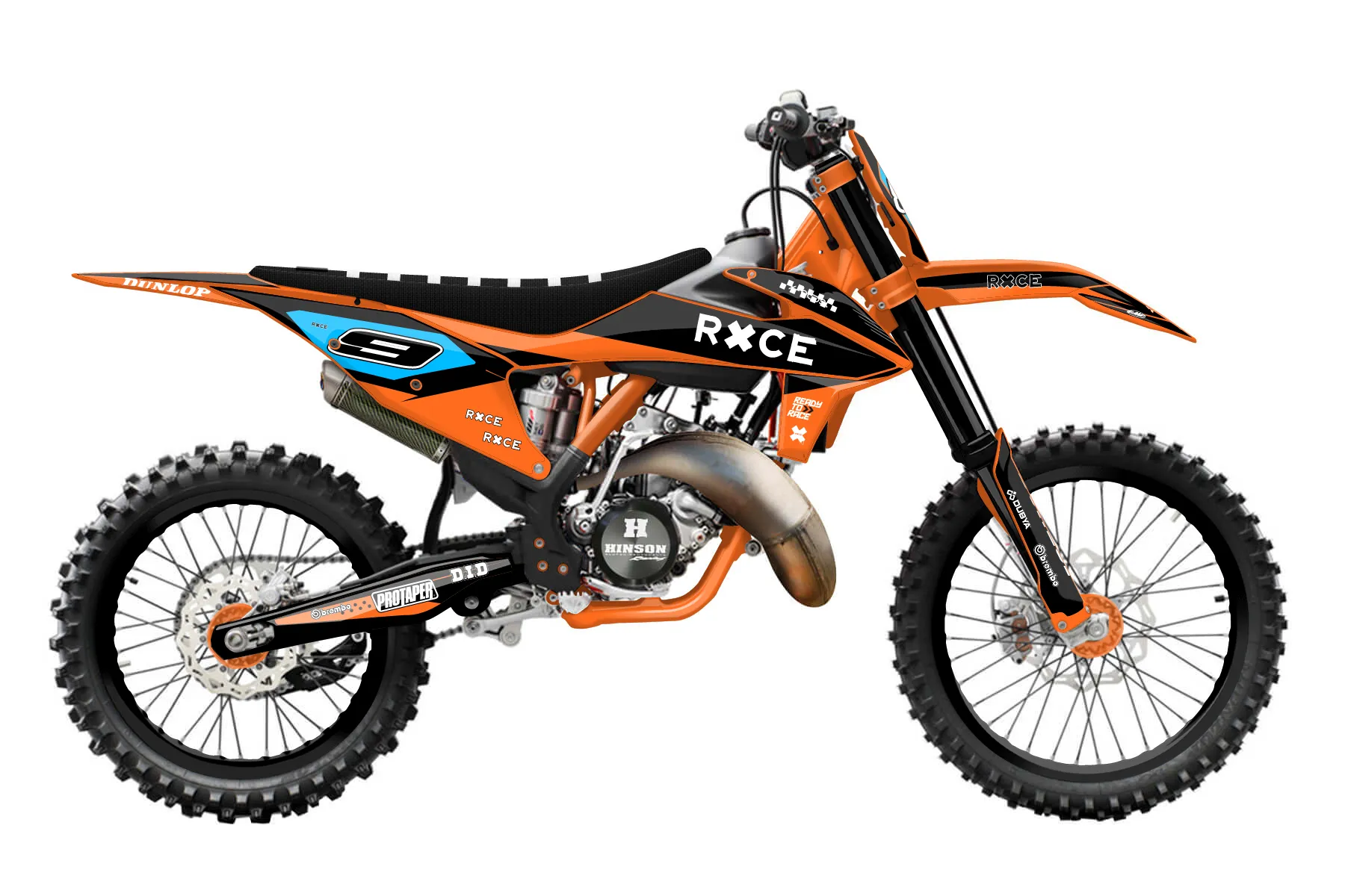 «Elleina 150 black and orange» — готовый комплект графики серии Staple для KTM MX Graphic Kit KTM SX 150 2019. В комплекте: графика на бак и боковые облицовки, крылья (переднее и заднее), передний щиток, номерные таблички, защита вилки. Материал: ПВХ-винил 80 мкр с холодной ламинацией 300 мкр, общая толщина 380 мкр; покрытие глянцевое или матовое на выбор. Устойчив к UV-излучению, воде, бензину и мойке высокого давления. Клей акриловый на сольвентной основе — постоянный, для гибких пластиков. На простых поверхностях монтируется без нагрева; для сложных изгибов рекомендуем фен. Этот пресет можно заказать как есть или взять за основу в конструкторе: поменять цвета, добавить стартовый номер и свой бренд. Производство — 3–5 рабочих дней, доставка по России СДЭКом или Почтой, по СНГ — курьерскими службами.