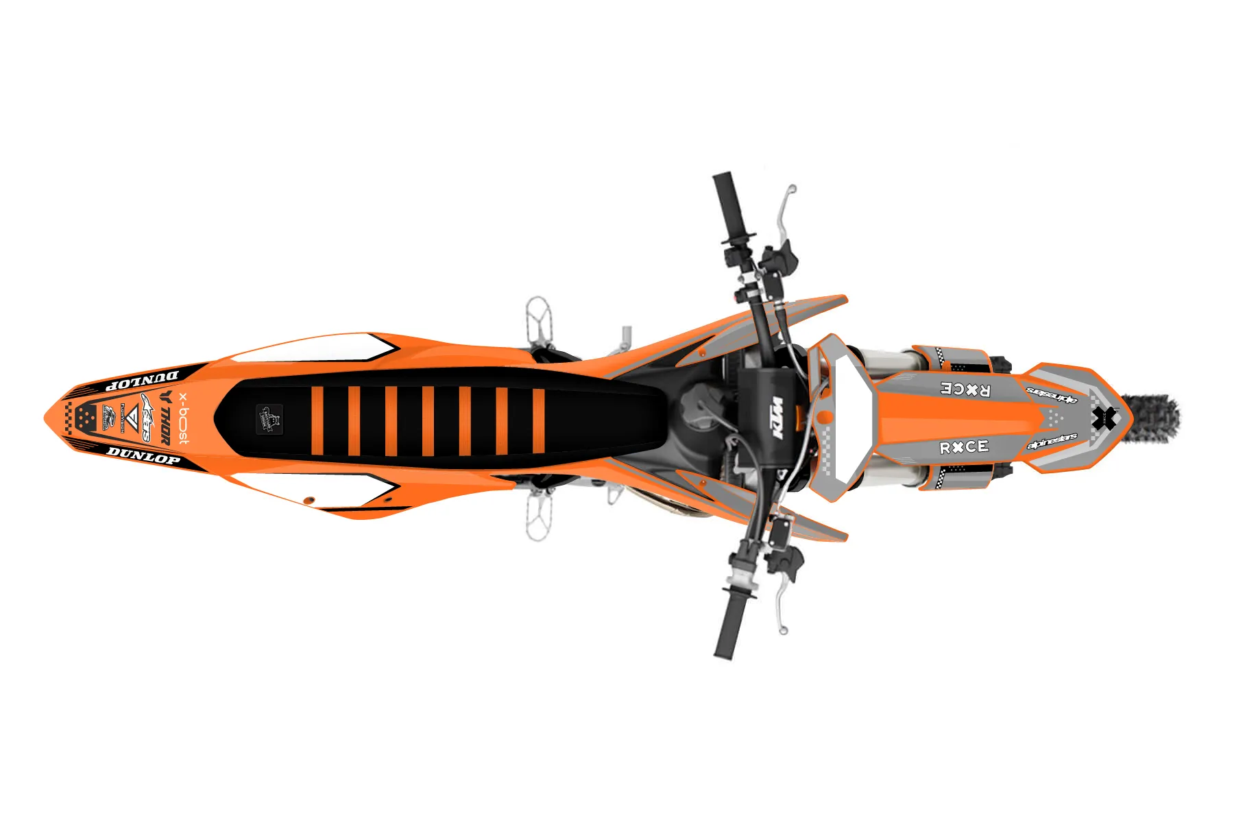 «Finall !» — готовый комплект графики серии Staple для KTM MX Graphic Kit KTM SX 150 2019. В комплекте: графика на бак и боковые облицовки, крылья (переднее и заднее), передний щиток, номерные таблички, защита вилки. Материал: ПВХ-винил 80 мкр с холодной ламинацией 300 мкр, общая толщина 380 мкр; покрытие глянцевое или матовое на выбор. Устойчив к UV-излучению, воде, бензину и мойке высокого давления. Клей акриловый на сольвентной основе — постоянный, для гибких пластиков. На простых поверхностях монтируется без нагрева; для сложных изгибов рекомендуем фен. Этот пресет можно заказать как есть или взять за основу в конструкторе: поменять цвета, добавить стартовый номер и свой бренд. Производство — 3–5 рабочих дней, доставка по России СДЭКом или Почтой, по СНГ — курьерскими службами.