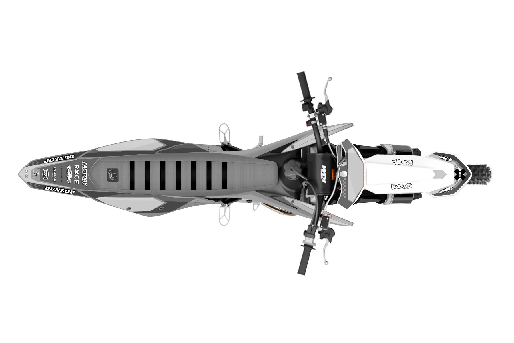 «ktm150» — готовый комплект графики серии Staple для KTM MX Graphic Kit KTM SX 150 2019. В комплекте: графика на бак и боковые облицовки, крылья (переднее и заднее), передний щиток, номерные таблички, защита вилки. Материал: ПВХ-винил 80 мкр с холодной ламинацией 300 мкр, общая толщина 380 мкр; покрытие глянцевое или матовое на выбор. Устойчив к UV-излучению, воде, бензину и мойке высокого давления. Клей акриловый на сольвентной основе — постоянный, для гибких пластиков. На простых поверхностях монтируется без нагрева; для сложных изгибов рекомендуем фен. Этот пресет можно заказать как есть или взять за основу в конструкторе: поменять цвета, добавить стартовый номер и свой бренд. Производство — 3–5 рабочих дней, доставка по России СДЭКом или Почтой, по СНГ — курьерскими службами.