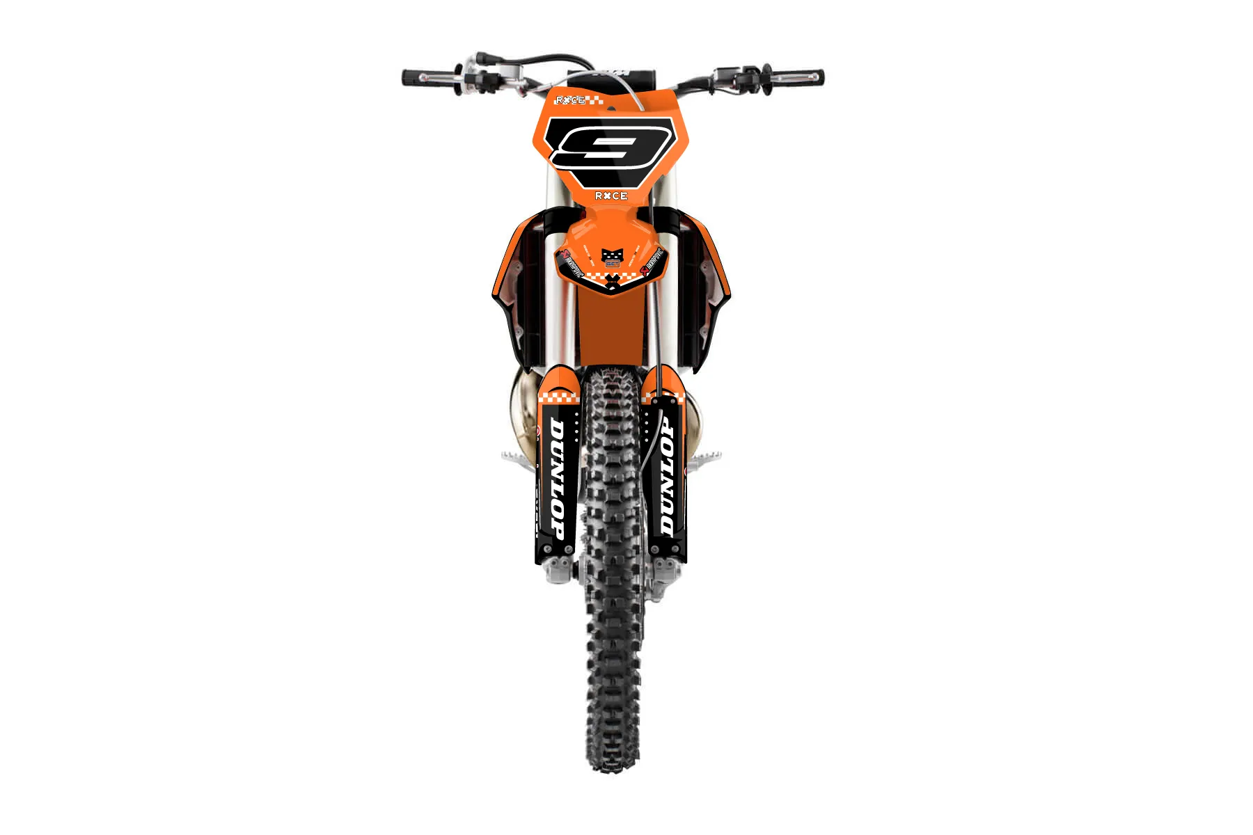 «Leak» — готовый комплект графики серии Staple для KTM MX Graphic Kit KTM SX 150 2019. В комплекте: графика на бак и боковые облицовки, крылья (переднее и заднее), передний щиток, номерные таблички, защита вилки. Материал: ПВХ-винил 80 мкр с холодной ламинацией 300 мкр, общая толщина 380 мкр; покрытие глянцевое или матовое на выбор. Устойчив к UV-излучению, воде, бензину и мойке высокого давления. Клей акриловый на сольвентной основе — постоянный, для гибких пластиков. На простых поверхностях монтируется без нагрева; для сложных изгибов рекомендуем фен. Этот пресет можно заказать как есть или взять за основу в конструкторе: поменять цвета, добавить стартовый номер и свой бренд. Производство — 3–5 рабочих дней, доставка по России СДЭКом или Почтой, по СНГ — курьерскими службами.