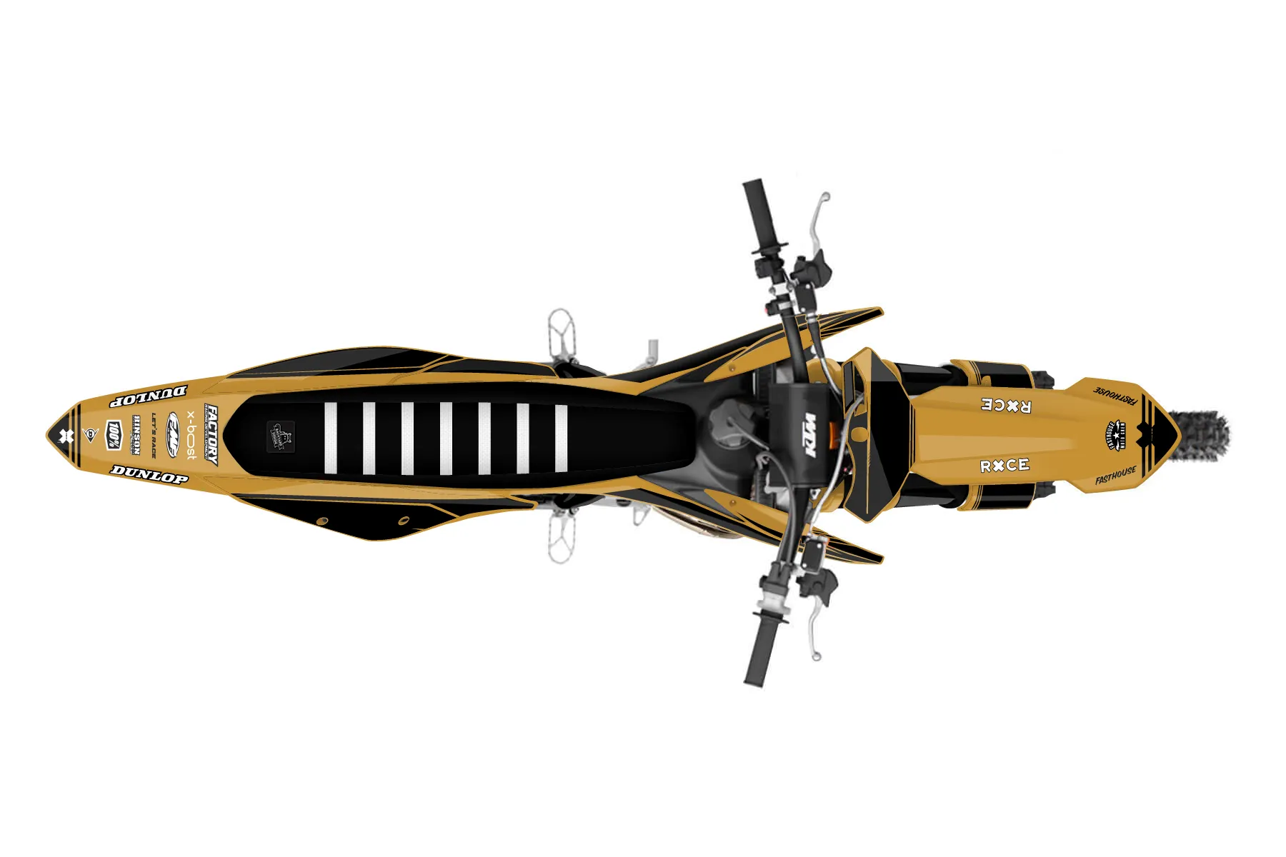 «Calm» — готовый комплект графики серии Untucked для KTM MX Graphic Kit KTM SX 150 2019. В комплекте: графика на бак и боковые облицовки, крылья (переднее и заднее), передний щиток, номерные таблички, защита вилки. Материал: ПВХ-винил 80 мкр с холодной ламинацией 300 мкр, общая толщина 380 мкр; покрытие глянцевое или матовое на выбор. Устойчив к UV-излучению, воде, бензину и мойке высокого давления. Клей акриловый на сольвентной основе — постоянный, для гибких пластиков. На простых поверхностях монтируется без нагрева; для сложных изгибов рекомендуем фен. Этот пресет можно заказать как есть или взять за основу в конструкторе: поменять цвета, добавить стартовый номер и свой бренд. Производство — 3–5 рабочих дней, доставка по России СДЭКом или Почтой, по СНГ — курьерскими службами.