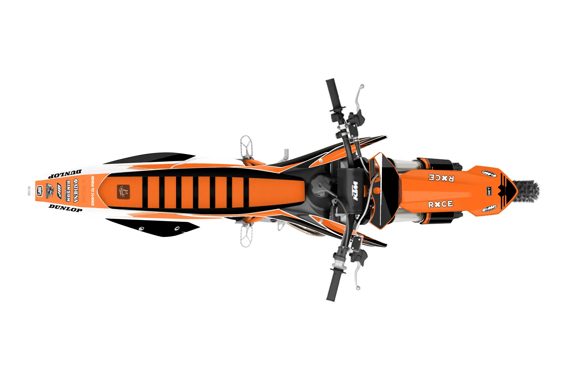 «Crowning» — готовый комплект графики серии Untucked для KTM MX Graphic Kit KTM SX 150 2019. В комплекте: графика на бак и боковые облицовки, крылья (переднее и заднее), передний щиток, номерные таблички, защита вилки. Материал: ПВХ-винил 80 мкр с холодной ламинацией 300 мкр, общая толщина 380 мкр; покрытие глянцевое или матовое на выбор. Устойчив к UV-излучению, воде, бензину и мойке высокого давления. Клей акриловый на сольвентной основе — постоянный, для гибких пластиков. На простых поверхностях монтируется без нагрева; для сложных изгибов рекомендуем фен. Этот пресет можно заказать как есть или взять за основу в конструкторе: поменять цвета, добавить стартовый номер и свой бренд. Производство — 3–5 рабочих дней, доставка по России СДЭКом или Почтой, по СНГ — курьерскими службами.