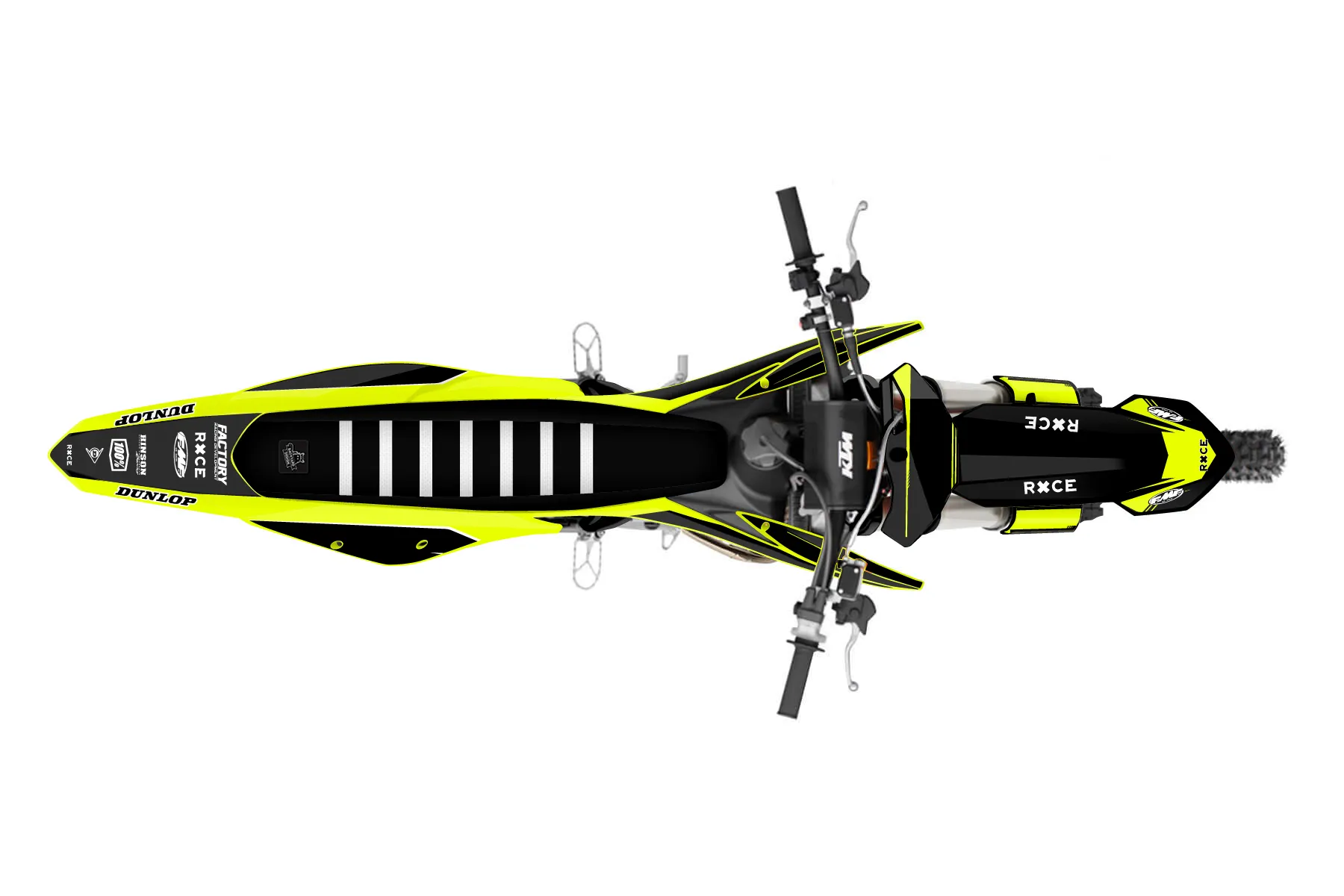 «Style Neon» — готовый комплект графики серии Untucked для KTM MX Graphic Kit KTM SX 150 2019. В комплекте: графика на бак и боковые облицовки, крылья (переднее и заднее), передний щиток, номерные таблички, защита вилки. Материал: ПВХ-винил 80 мкр с холодной ламинацией 300 мкр, общая толщина 380 мкр; покрытие глянцевое или матовое на выбор. Устойчив к UV-излучению, воде, бензину и мойке высокого давления. Клей акриловый на сольвентной основе — постоянный, для гибких пластиков. На простых поверхностях монтируется без нагрева; для сложных изгибов рекомендуем фен. Этот пресет можно заказать как есть или взять за основу в конструкторе: поменять цвета, добавить стартовый номер и свой бренд. Производство — 3–5 рабочих дней, доставка по России СДЭКом или Почтой, по СНГ — курьерскими службами.
