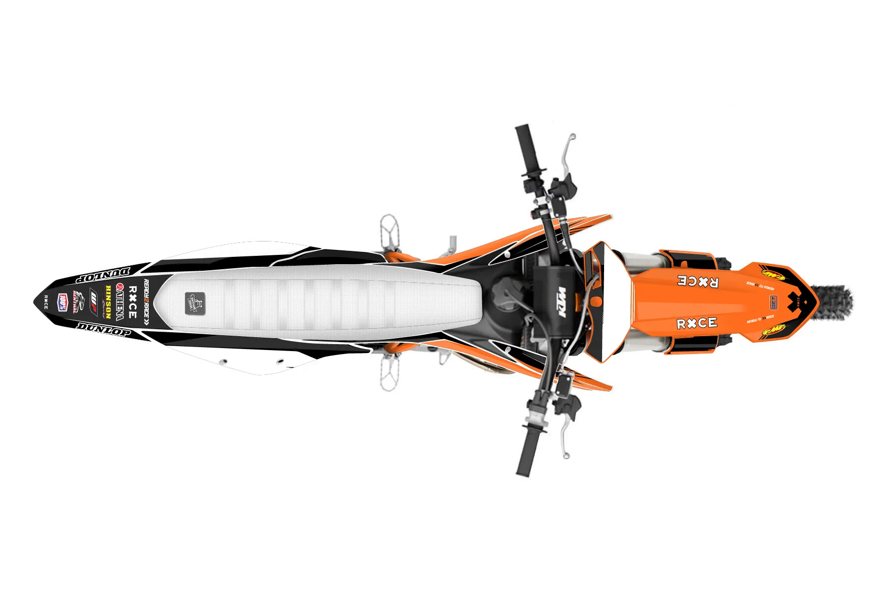 «Swell» — готовый комплект графики серии Untucked для KTM MX Graphic Kit KTM SX 150 2019. В комплекте: графика на бак и боковые облицовки, крылья (переднее и заднее), передний щиток, номерные таблички, защита вилки. Материал: ПВХ-винил 80 мкр с холодной ламинацией 300 мкр, общая толщина 380 мкр; покрытие глянцевое или матовое на выбор. Устойчив к UV-излучению, воде, бензину и мойке высокого давления. Клей акриловый на сольвентной основе — постоянный, для гибких пластиков. На простых поверхностях монтируется без нагрева; для сложных изгибов рекомендуем фен. Этот пресет можно заказать как есть или взять за основу в конструкторе: поменять цвета, добавить стартовый номер и свой бренд. Производство — 3–5 рабочих дней, доставка по России СДЭКом или Почтой, по СНГ — курьерскими службами.