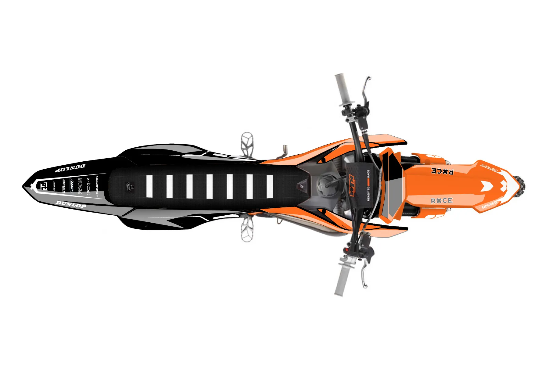 «Visonary» — готовый комплект графики серии Flow для KTM MX Graphic Kit KTM SX 150 2023. В комплекте: графика на бак и боковые облицовки, крылья (переднее и заднее), передний щиток, номерные таблички, защита вилки. Материал: ПВХ-винил 80 мкр с холодной ламинацией 300 мкр, общая толщина 380 мкр; покрытие глянцевое или матовое на выбор. Устойчив к UV-излучению, воде, бензину и мойке высокого давления. Клей акриловый на сольвентной основе — постоянный, для гибких пластиков. На простых поверхностях монтируется без нагрева; для сложных изгибов рекомендуем фен. Этот пресет можно заказать как есть или взять за основу в конструкторе: поменять цвета, добавить стартовый номер и свой бренд. Производство — 3–5 рабочих дней, доставка по России СДЭКом или Почтой, по СНГ — курьерскими службами.