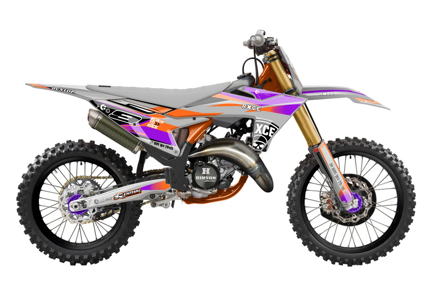 «Emphatic» — готовый комплект графики серии Fusion для KTM MX Graphic Kit KTM SX 150 2023. В комплекте: графика на бак и боковые облицовки, крылья (переднее и заднее), передний щиток, номерные таблички, защита вилки. Материал: ПВХ-винил 80 мкр с холодной ламинацией 300 мкр, общая толщина 380 мкр; покрытие глянцевое или матовое на выбор. Устойчив к UV-излучению, воде, бензину и мойке высокого давления. Клей акриловый на сольвентной основе — постоянный, для гибких пластиков. На простых поверхностях монтируется без нагрева; для сложных изгибов рекомендуем фен. Этот пресет можно заказать как есть или взять за основу в конструкторе: поменять цвета, добавить стартовый номер и свой бренд. Производство — 3–5 рабочих дней, доставка по России СДЭКом или Почтой, по СНГ — курьерскими службами.