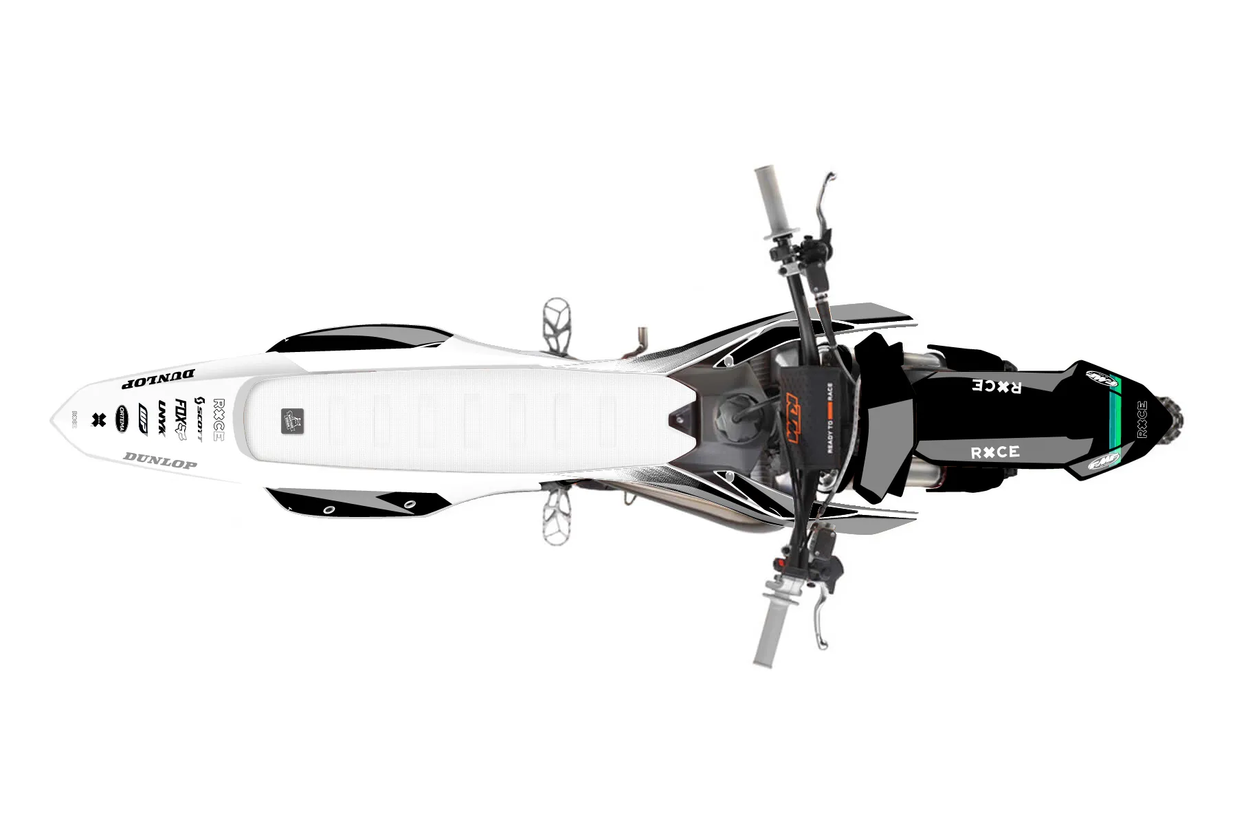 «Champ» — готовый комплект графики серии Maverick для KTM MX Graphic Kit KTM SX 150 2023. В комплекте: графика на бак и боковые облицовки, крылья (переднее и заднее), передний щиток, номерные таблички, защита вилки. Материал: ПВХ-винил 80 мкр с холодной ламинацией 300 мкр, общая толщина 380 мкр; покрытие глянцевое или матовое на выбор. Устойчив к UV-излучению, воде, бензину и мойке высокого давления. Клей акриловый на сольвентной основе — постоянный, для гибких пластиков. На простых поверхностях монтируется без нагрева; для сложных изгибов рекомендуем фен. Этот пресет можно заказать как есть или взять за основу в конструкторе: поменять цвета, добавить стартовый номер и свой бренд. Производство — 3–5 рабочих дней, доставка по России СДЭКом или Почтой, по СНГ — курьерскими службами.