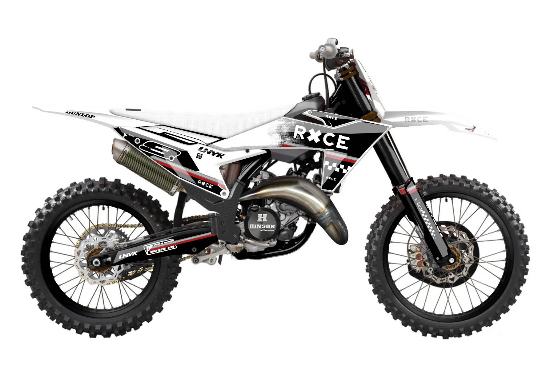 «Speedy» — готовый комплект графики серии Maverick для KTM MX Graphic Kit KTM SX 150 2023. В комплекте: графика на бак и боковые облицовки, крылья (переднее и заднее), передний щиток, номерные таблички, защита вилки. Материал: ПВХ-винил 80 мкр с холодной ламинацией 300 мкр, общая толщина 380 мкр; покрытие глянцевое или матовое на выбор. Устойчив к UV-излучению, воде, бензину и мойке высокого давления. Клей акриловый на сольвентной основе — постоянный, для гибких пластиков. На простых поверхностях монтируется без нагрева; для сложных изгибов рекомендуем фен. Этот пресет можно заказать как есть или взять за основу в конструкторе: поменять цвета, добавить стартовый номер и свой бренд. Производство — 3–5 рабочих дней, доставка по России СДЭКом или Почтой, по СНГ — курьерскими службами.