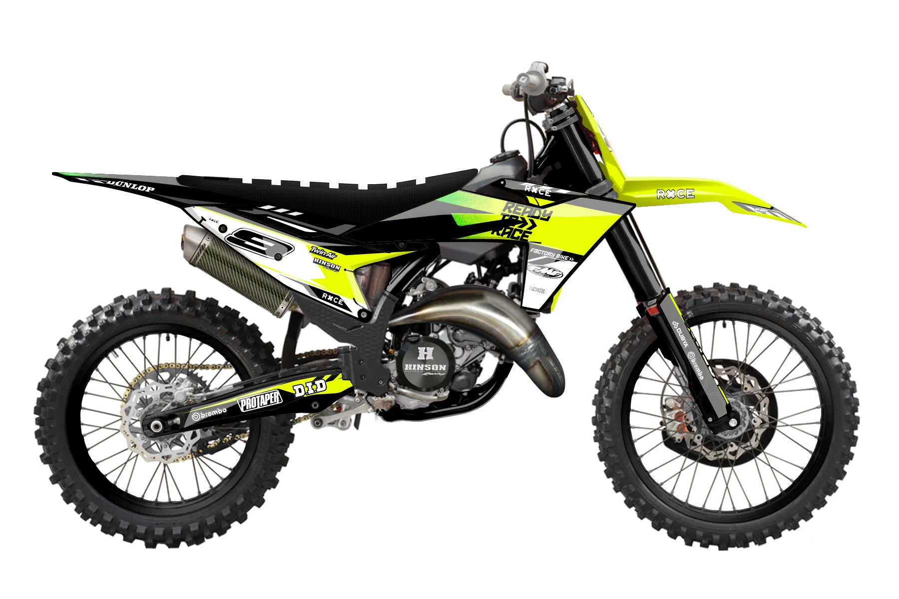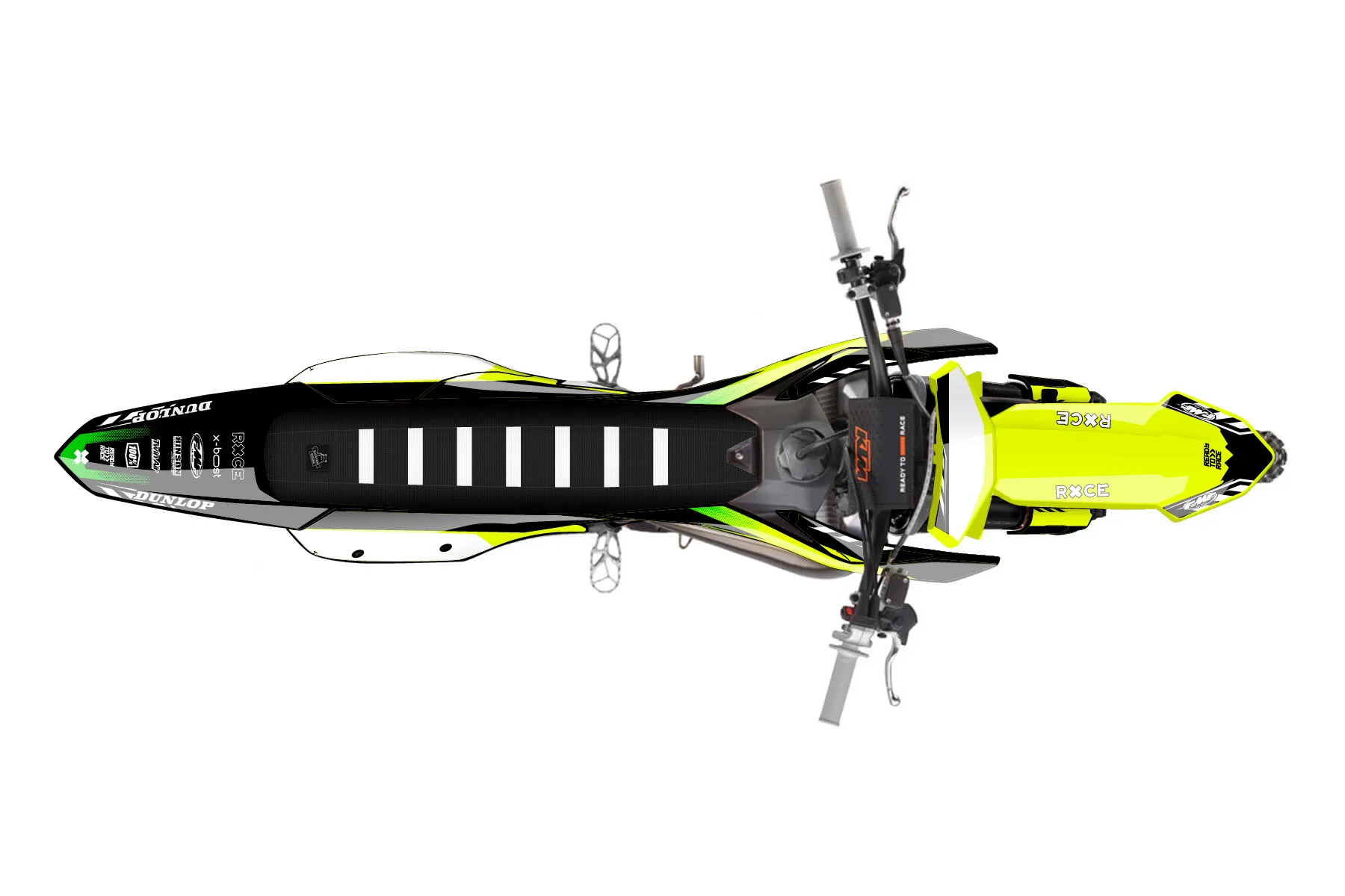 «Volt Neon» — готовый комплект графики серии Maverick для KTM MX Graphic Kit KTM SX 150 2023. В комплекте: графика на бак и боковые облицовки, крылья (переднее и заднее), передний щиток, номерные таблички, защита вилки. Материал: ПВХ-винил 80 мкр с холодной ламинацией 300 мкр, общая толщина 380 мкр; покрытие глянцевое или матовое на выбор. Устойчив к UV-излучению, воде, бензину и мойке высокого давления. Клей акриловый на сольвентной основе — постоянный, для гибких пластиков. На простых поверхностях монтируется без нагрева; для сложных изгибов рекомендуем фен. Этот пресет можно заказать как есть или взять за основу в конструкторе: поменять цвета, добавить стартовый номер и свой бренд. Производство — 3–5 рабочих дней, доставка по России СДЭКом или Почтой, по СНГ — курьерскими службами.