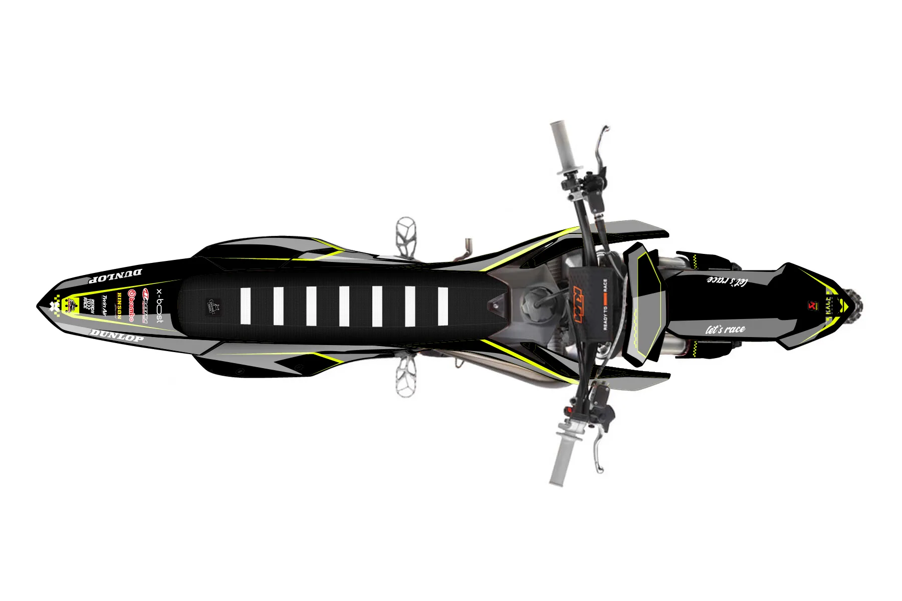 «Refuse Neon» — готовый комплект графики серии Staple для KTM MX Graphic Kit KTM SX 150 2023. В комплекте: графика на бак и боковые облицовки, крылья (переднее и заднее), передний щиток, номерные таблички, защита вилки. Материал: ПВХ-винил 80 мкр с холодной ламинацией 300 мкр, общая толщина 380 мкр; покрытие глянцевое или матовое на выбор. Устойчив к UV-излучению, воде, бензину и мойке высокого давления. Клей акриловый на сольвентной основе — постоянный, для гибких пластиков. На простых поверхностях монтируется без нагрева; для сложных изгибов рекомендуем фен. Этот пресет можно заказать как есть или взять за основу в конструкторе: поменять цвета, добавить стартовый номер и свой бренд. Производство — 3–5 рабочих дней, доставка по России СДЭКом или Почтой, по СНГ — курьерскими службами.