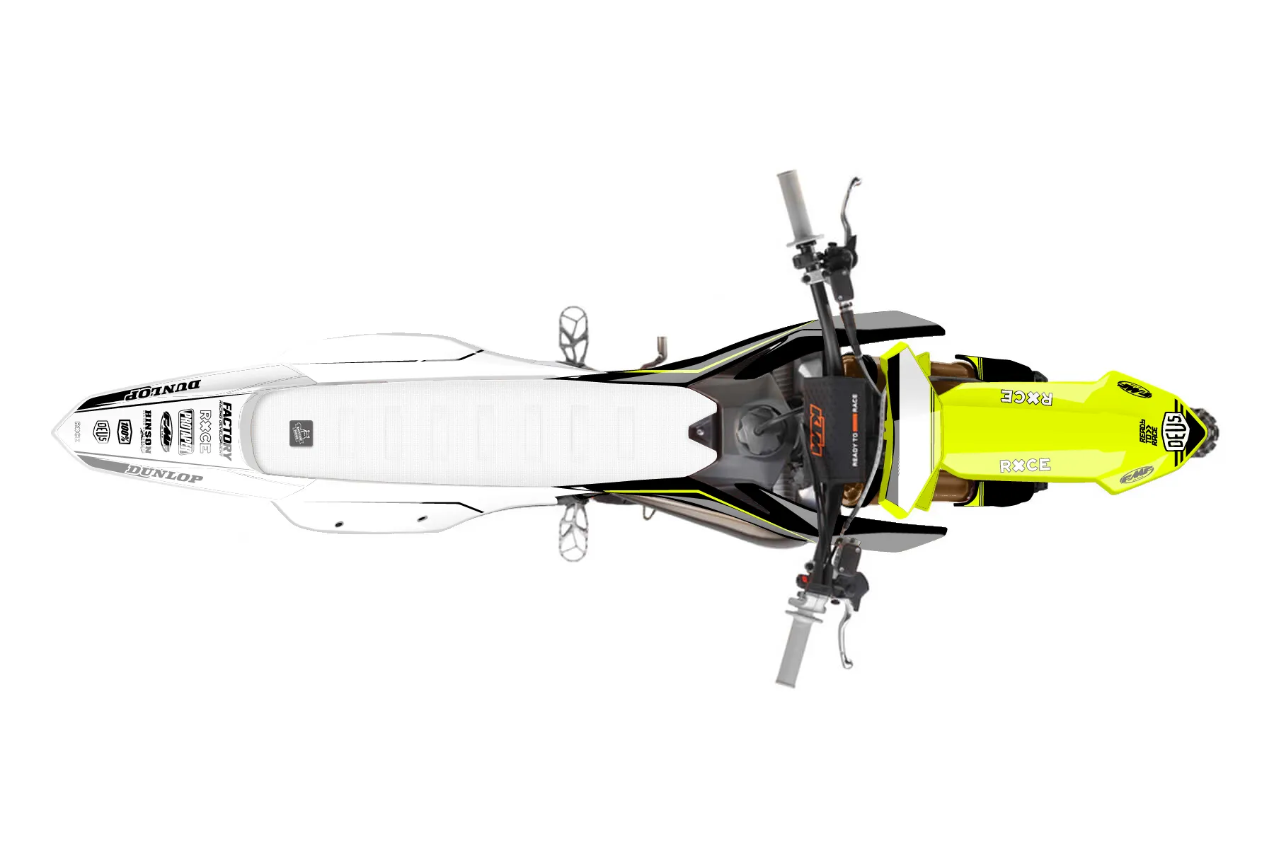 «Ride Neon» — готовый комплект графики серии Untucked для KTM MX Graphic Kit KTM SX 150 2023. В комплекте: графика на бак и боковые облицовки, крылья (переднее и заднее), передний щиток, номерные таблички, защита вилки. Материал: ПВХ-винил 80 мкр с холодной ламинацией 300 мкр, общая толщина 380 мкр; покрытие глянцевое или матовое на выбор. Устойчив к UV-излучению, воде, бензину и мойке высокого давления. Клей акриловый на сольвентной основе — постоянный, для гибких пластиков. На простых поверхностях монтируется без нагрева; для сложных изгибов рекомендуем фен. Этот пресет можно заказать как есть или взять за основу в конструкторе: поменять цвета, добавить стартовый номер и свой бренд. Производство — 3–5 рабочих дней, доставка по России СДЭКом или Почтой, по СНГ — курьерскими службами.