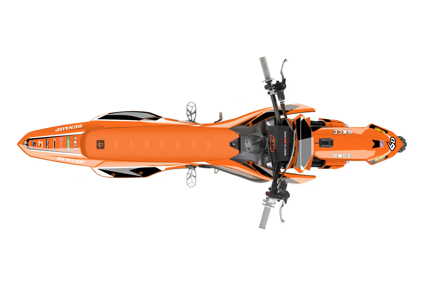«CustomDesign» — готовый комплект графики серии Flow для KTM MX Graphic Kit KTM SX 150 2025. В комплекте: графика на бак и боковые облицовки, крылья (переднее и заднее), передний щиток, номерные таблички, защита вилки. Материал: ПВХ-винил 80 мкр с холодной ламинацией 300 мкр, общая толщина 380 мкр; покрытие глянцевое или матовое на выбор. Устойчив к UV-излучению, воде, бензину и мойке высокого давления. Клей акриловый на сольвентной основе — постоянный, для гибких пластиков. На простых поверхностях монтируется без нагрева; для сложных изгибов рекомендуем фен. Этот пресет можно заказать как есть или взять за основу в конструкторе: поменять цвета, добавить стартовый номер и свой бренд. Производство — 3–5 рабочих дней, доставка по России СДЭКом или Почтой, по СНГ — курьерскими службами.