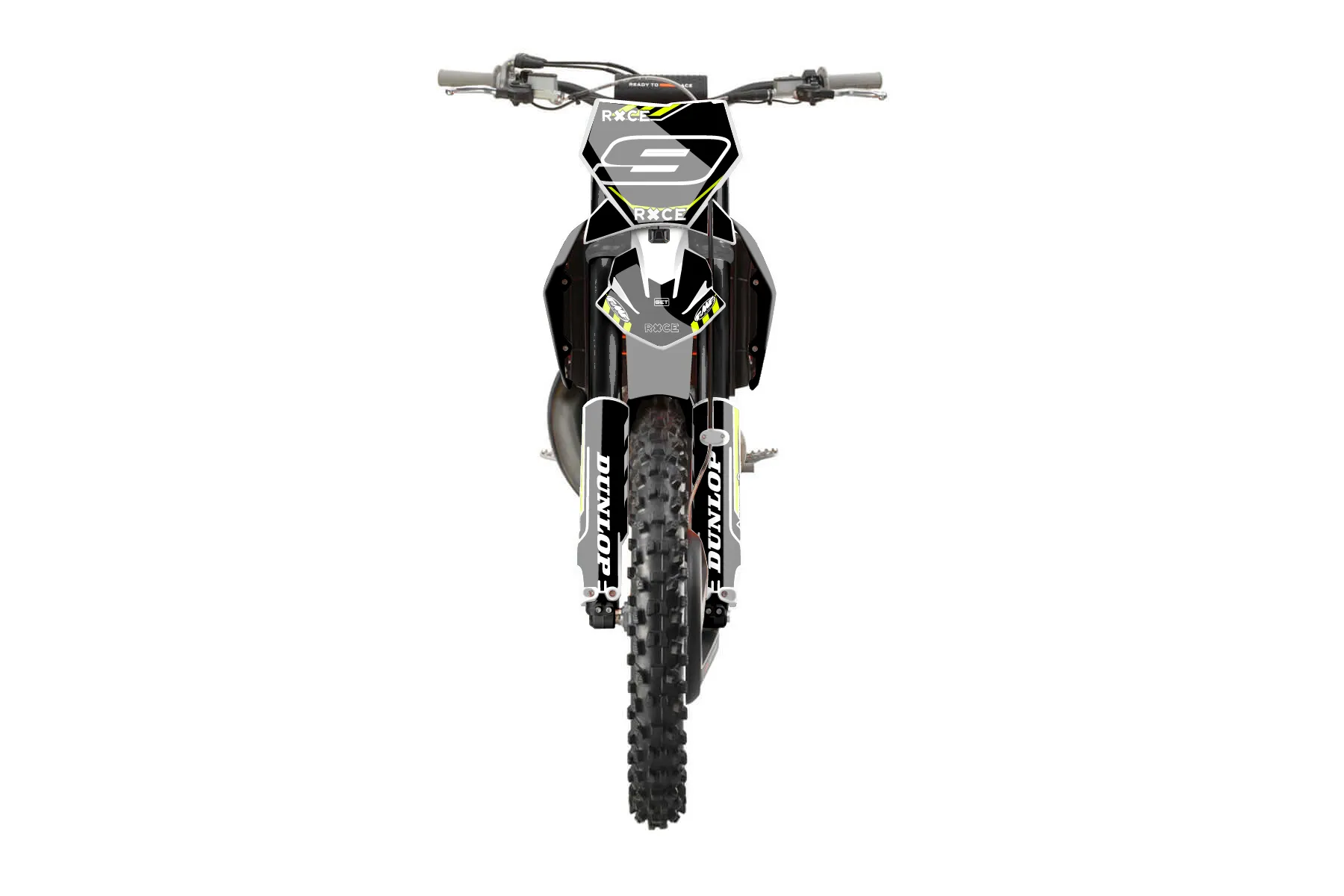 «Daze Fluo» — готовый комплект графики серии Maverick для KTM MX Graphic Kit KTM SX 150 2025. В комплекте: графика на бак и боковые облицовки, крылья (переднее и заднее), передний щиток, номерные таблички, защита вилки. Материал: ПВХ-винил 80 мкр с холодной ламинацией 300 мкр, общая толщина 380 мкр; покрытие глянцевое или матовое на выбор. Устойчив к UV-излучению, воде, бензину и мойке высокого давления. Клей акриловый на сольвентной основе — постоянный, для гибких пластиков. На простых поверхностях монтируется без нагрева; для сложных изгибов рекомендуем фен. Этот пресет можно заказать как есть или взять за основу в конструкторе: поменять цвета, добавить стартовый номер и свой бренд. Производство — 3–5 рабочих дней, доставка по России СДЭКом или Почтой, по СНГ — курьерскими службами.