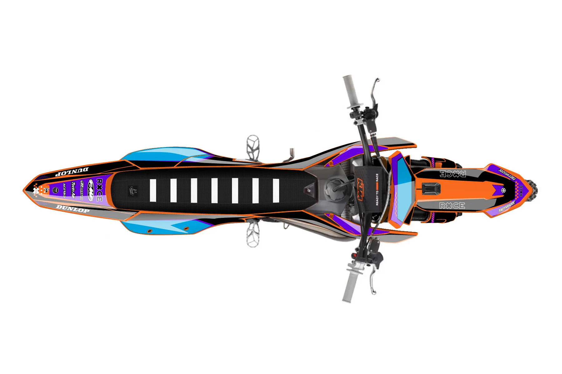 «CB 1» — готовый комплект графики серии Staple для KTM MX Graphic Kit KTM SX 150 2025. В комплекте: графика на бак и боковые облицовки, крылья (переднее и заднее), передний щиток, номерные таблички, защита вилки. Материал: ПВХ-винил 80 мкр с холодной ламинацией 300 мкр, общая толщина 380 мкр; покрытие глянцевое или матовое на выбор. Устойчив к UV-излучению, воде, бензину и мойке высокого давления. Клей акриловый на сольвентной основе — постоянный, для гибких пластиков. На простых поверхностях монтируется без нагрева; для сложных изгибов рекомендуем фен. Этот пресет можно заказать как есть или взять за основу в конструкторе: поменять цвета, добавить стартовый номер и свой бренд. Производство — 3–5 рабочих дней, доставка по России СДЭКом или Почтой, по СНГ — курьерскими службами.