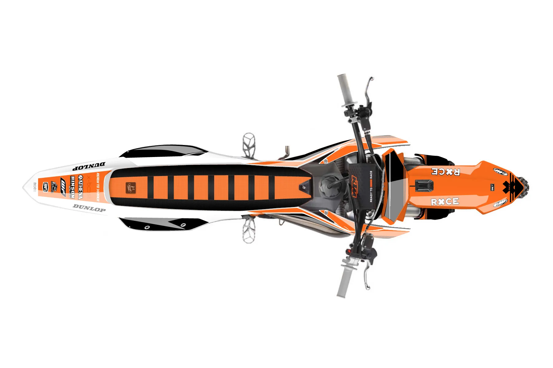 «Crowning» — готовый комплект графики серии Untucked для KTM MX Graphic Kit KTM SX 150 2025. В комплекте: графика на бак и боковые облицовки, крылья (переднее и заднее), передний щиток, номерные таблички, защита вилки. Материал: ПВХ-винил 80 мкр с холодной ламинацией 300 мкр, общая толщина 380 мкр; покрытие глянцевое или матовое на выбор. Устойчив к UV-излучению, воде, бензину и мойке высокого давления. Клей акриловый на сольвентной основе — постоянный, для гибких пластиков. На простых поверхностях монтируется без нагрева; для сложных изгибов рекомендуем фен. Этот пресет можно заказать как есть или взять за основу в конструкторе: поменять цвета, добавить стартовый номер и свой бренд. Производство — 3–5 рабочих дней, доставка по России СДЭКом или Почтой, по СНГ — курьерскими службами.