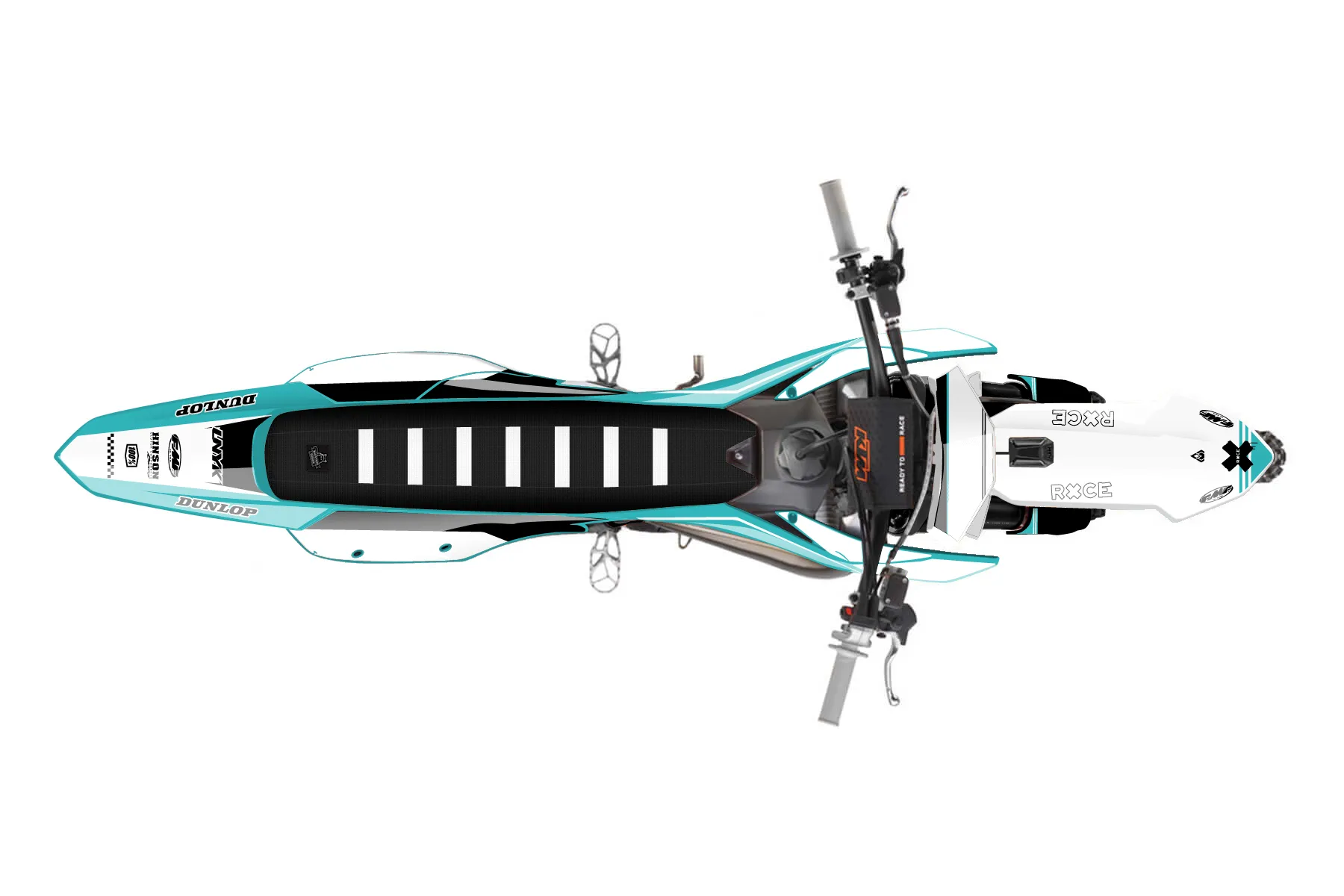 «Dynamic» — готовый комплект графики серии Untucked для KTM MX Graphic Kit KTM SX 150 2025. В комплекте: графика на бак и боковые облицовки, крылья (переднее и заднее), передний щиток, номерные таблички, защита вилки. Материал: ПВХ-винил 80 мкр с холодной ламинацией 300 мкр, общая толщина 380 мкр; покрытие глянцевое или матовое на выбор. Устойчив к UV-излучению, воде, бензину и мойке высокого давления. Клей акриловый на сольвентной основе — постоянный, для гибких пластиков. На простых поверхностях монтируется без нагрева; для сложных изгибов рекомендуем фен. Этот пресет можно заказать как есть или взять за основу в конструкторе: поменять цвета, добавить стартовый номер и свой бренд. Производство — 3–5 рабочих дней, доставка по России СДЭКом или Почтой, по СНГ — курьерскими службами.