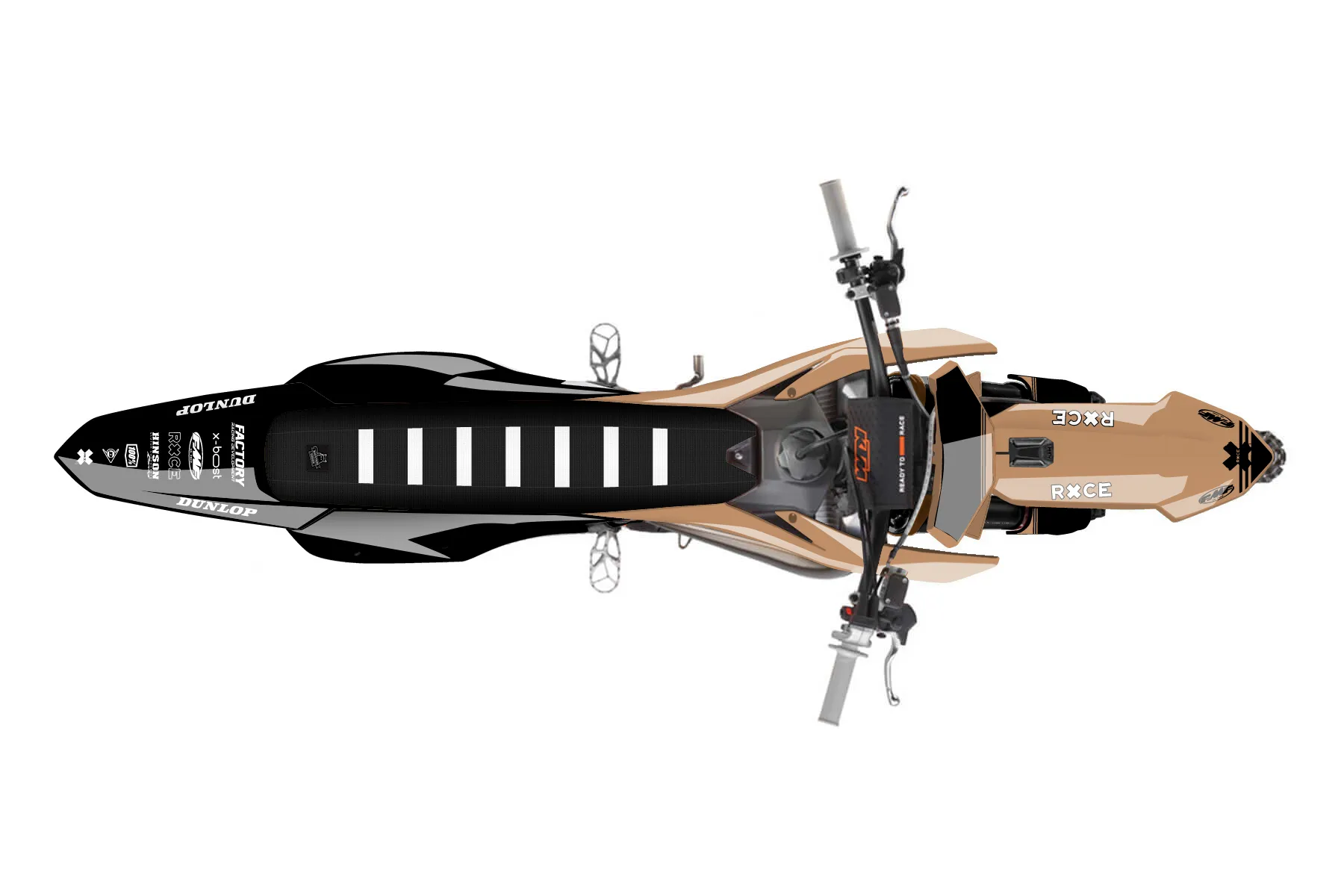 «Magnetic» — готовый комплект графики серии Untucked для KTM MX Graphic Kit KTM SX 150 2025. В комплекте: графика на бак и боковые облицовки, крылья (переднее и заднее), передний щиток, номерные таблички, защита вилки. Материал: ПВХ-винил 80 мкр с холодной ламинацией 300 мкр, общая толщина 380 мкр; покрытие глянцевое или матовое на выбор. Устойчив к UV-излучению, воде, бензину и мойке высокого давления. Клей акриловый на сольвентной основе — постоянный, для гибких пластиков. На простых поверхностях монтируется без нагрева; для сложных изгибов рекомендуем фен. Этот пресет можно заказать как есть или взять за основу в конструкторе: поменять цвета, добавить стартовый номер и свой бренд. Производство — 3–5 рабочих дней, доставка по России СДЭКом или Почтой, по СНГ — курьерскими службами.