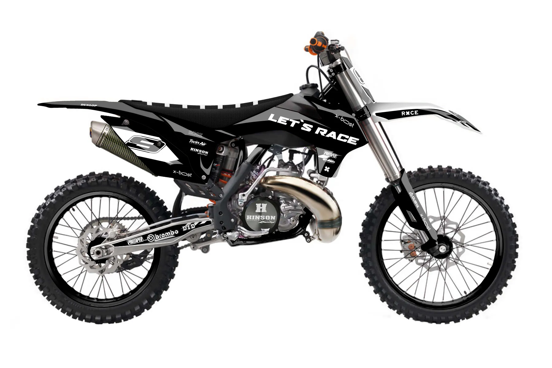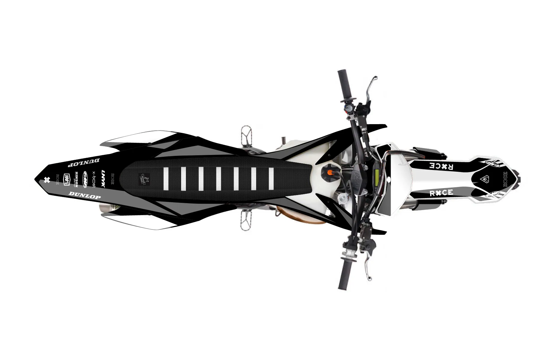 «DeCore» — готовый комплект графики серии Maverick для KTM MX Graphic Kit KTM SX 250 2013. В комплекте: графика на бак и боковые облицовки, крылья (переднее и заднее), передний щиток, номерные таблички, защита вилки. Материал: ПВХ-винил 80 мкр с холодной ламинацией 300 мкр, общая толщина 380 мкр; покрытие глянцевое или матовое на выбор. Устойчив к UV-излучению, воде, бензину и мойке высокого давления. Клей акриловый на сольвентной основе — постоянный, для гибких пластиков. На простых поверхностях монтируется без нагрева; для сложных изгибов рекомендуем фен. Этот пресет можно заказать как есть или взять за основу в конструкторе: поменять цвета, добавить стартовый номер и свой бренд. Производство — 3–5 рабочих дней, доставка по России СДЭКом или Почтой, по СНГ — курьерскими службами.