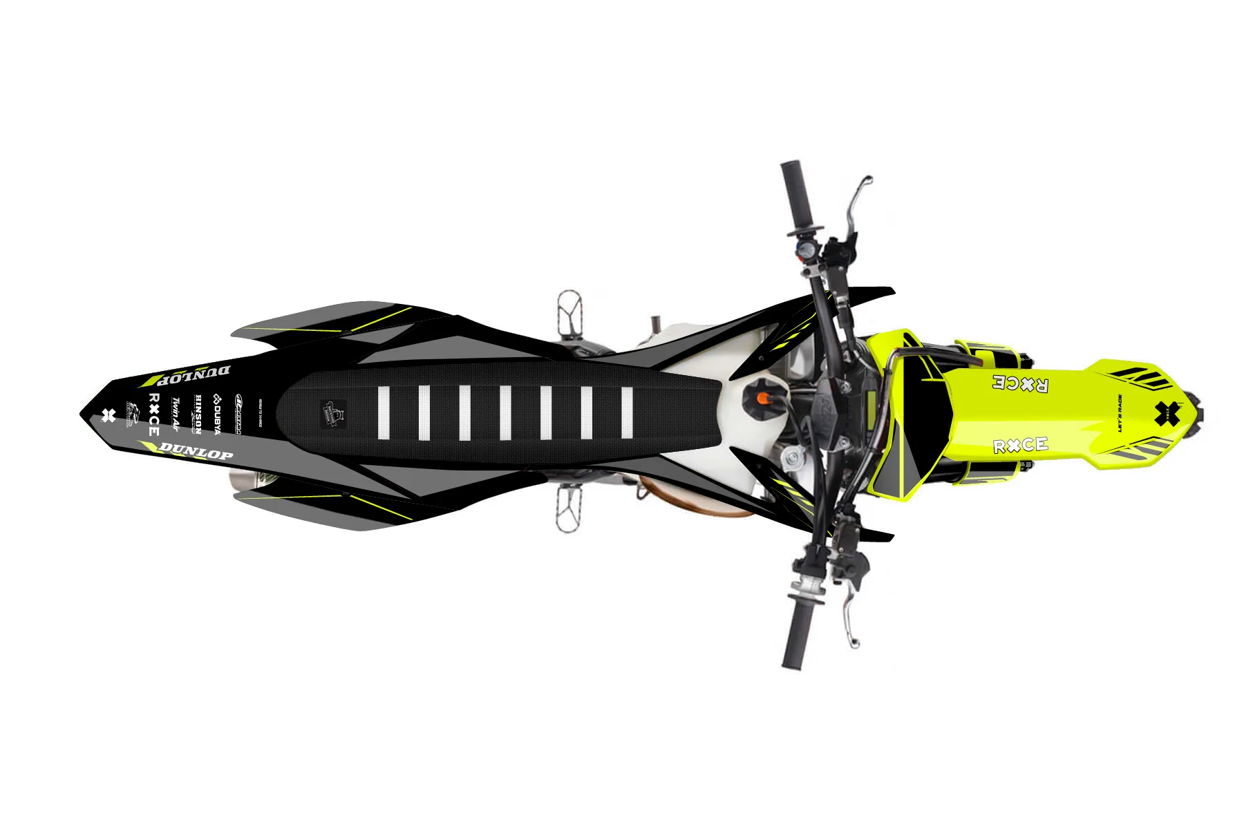 «Kitted Neon» — готовый комплект графики серии Maverick для KTM MX Graphic Kit KTM SX 250 2013. В комплекте: графика на бак и боковые облицовки, крылья (переднее и заднее), передний щиток, номерные таблички, защита вилки. Материал: ПВХ-винил 80 мкр с холодной ламинацией 300 мкр, общая толщина 380 мкр; покрытие глянцевое или матовое на выбор. Устойчив к UV-излучению, воде, бензину и мойке высокого давления. Клей акриловый на сольвентной основе — постоянный, для гибких пластиков. На простых поверхностях монтируется без нагрева; для сложных изгибов рекомендуем фен. Этот пресет можно заказать как есть или взять за основу в конструкторе: поменять цвета, добавить стартовый номер и свой бренд. Производство — 3–5 рабочих дней, доставка по России СДЭКом или Почтой, по СНГ — курьерскими службами.