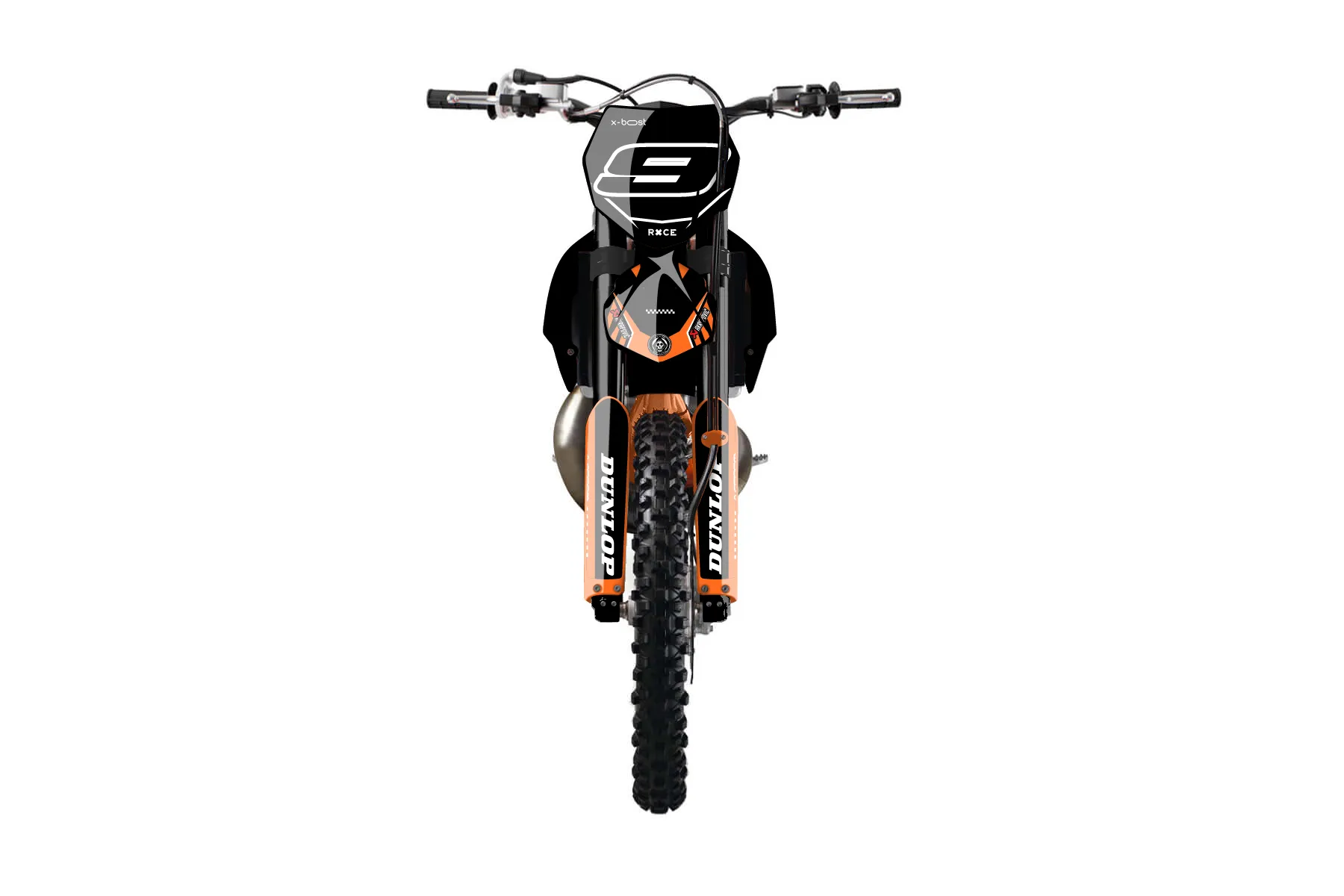 «Mental» — готовый комплект графики серии Maverick для KTM MX Graphic Kit KTM SX 250 2013. В комплекте: графика на бак и боковые облицовки, крылья (переднее и заднее), передний щиток, номерные таблички, защита вилки. Материал: ПВХ-винил 80 мкр с холодной ламинацией 300 мкр, общая толщина 380 мкр; покрытие глянцевое или матовое на выбор. Устойчив к UV-излучению, воде, бензину и мойке высокого давления. Клей акриловый на сольвентной основе — постоянный, для гибких пластиков. На простых поверхностях монтируется без нагрева; для сложных изгибов рекомендуем фен. Этот пресет можно заказать как есть или взять за основу в конструкторе: поменять цвета, добавить стартовый номер и свой бренд. Производство — 3–5 рабочих дней, доставка по России СДЭКом или Почтой, по СНГ — курьерскими службами.
