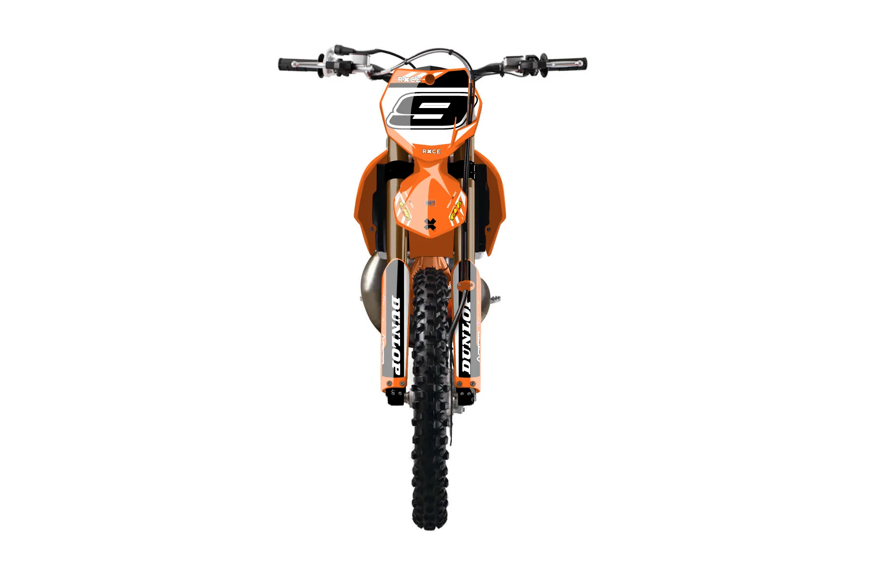 «Rapid» — готовый комплект графики серии Maverick для KTM MX Graphic Kit KTM SX 250 2013. В комплекте: графика на бак и боковые облицовки, крылья (переднее и заднее), передний щиток, номерные таблички, защита вилки. Материал: ПВХ-винил 80 мкр с холодной ламинацией 300 мкр, общая толщина 380 мкр; покрытие глянцевое или матовое на выбор. Устойчив к UV-излучению, воде, бензину и мойке высокого давления. Клей акриловый на сольвентной основе — постоянный, для гибких пластиков. На простых поверхностях монтируется без нагрева; для сложных изгибов рекомендуем фен. Этот пресет можно заказать как есть или взять за основу в конструкторе: поменять цвета, добавить стартовый номер и свой бренд. Производство — 3–5 рабочих дней, доставка по России СДЭКом или Почтой, по СНГ — курьерскими службами.