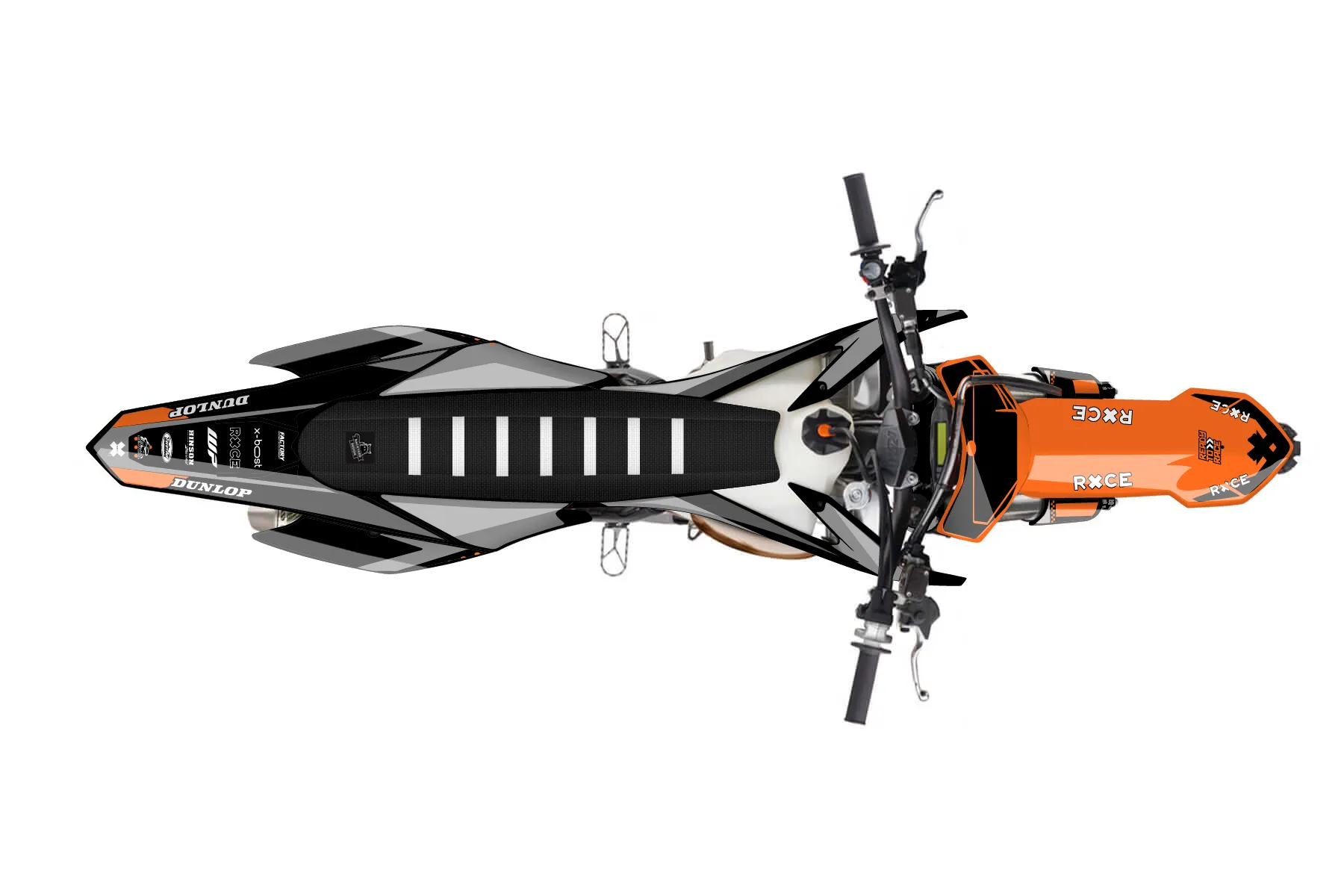 «Cape» — готовый комплект графики серии Staple для KTM MX Graphic Kit KTM SX 250 2013. В комплекте: графика на бак и боковые облицовки, крылья (переднее и заднее), передний щиток, номерные таблички, защита вилки. Материал: ПВХ-винил 80 мкр с холодной ламинацией 300 мкр, общая толщина 380 мкр; покрытие глянцевое или матовое на выбор. Устойчив к UV-излучению, воде, бензину и мойке высокого давления. Клей акриловый на сольвентной основе — постоянный, для гибких пластиков. На простых поверхностях монтируется без нагрева; для сложных изгибов рекомендуем фен. Этот пресет можно заказать как есть или взять за основу в конструкторе: поменять цвета, добавить стартовый номер и свой бренд. Производство — 3–5 рабочих дней, доставка по России СДЭКом или Почтой, по СНГ — курьерскими службами.