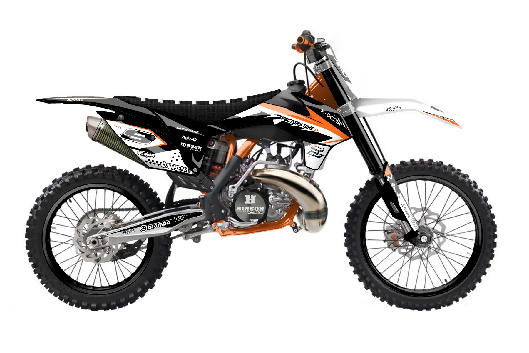 «Chef» — готовый комплект графики серии Staple для KTM MX Graphic Kit KTM SX 250 2013. В комплекте: графика на бак и боковые облицовки, крылья (переднее и заднее), передний щиток, номерные таблички, защита вилки. Материал: ПВХ-винил 80 мкр с холодной ламинацией 300 мкр, общая толщина 380 мкр; покрытие глянцевое или матовое на выбор. Устойчив к UV-излучению, воде, бензину и мойке высокого давления. Клей акриловый на сольвентной основе — постоянный, для гибких пластиков. На простых поверхностях монтируется без нагрева; для сложных изгибов рекомендуем фен. Этот пресет можно заказать как есть или взять за основу в конструкторе: поменять цвета, добавить стартовый номер и свой бренд. Производство — 3–5 рабочих дней, доставка по России СДЭКом или Почтой, по СНГ — курьерскими службами.