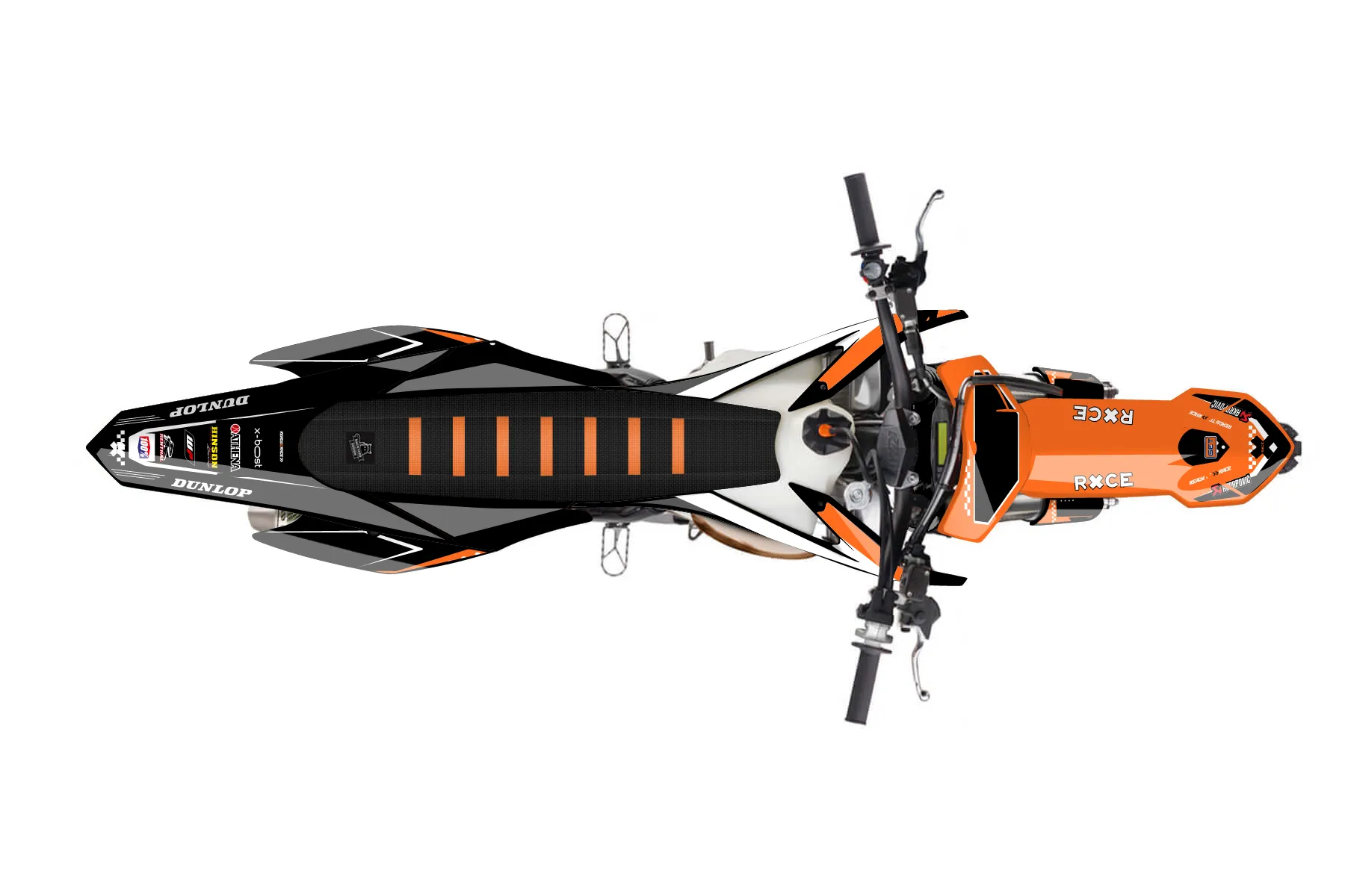 «Leak» — готовый комплект графики серии Staple для KTM MX Graphic Kit KTM SX 250 2013. В комплекте: графика на бак и боковые облицовки, крылья (переднее и заднее), передний щиток, номерные таблички, защита вилки. Материал: ПВХ-винил 80 мкр с холодной ламинацией 300 мкр, общая толщина 380 мкр; покрытие глянцевое или матовое на выбор. Устойчив к UV-излучению, воде, бензину и мойке высокого давления. Клей акриловый на сольвентной основе — постоянный, для гибких пластиков. На простых поверхностях монтируется без нагрева; для сложных изгибов рекомендуем фен. Этот пресет можно заказать как есть или взять за основу в конструкторе: поменять цвета, добавить стартовый номер и свой бренд. Производство — 3–5 рабочих дней, доставка по России СДЭКом или Почтой, по СНГ — курьерскими службами.