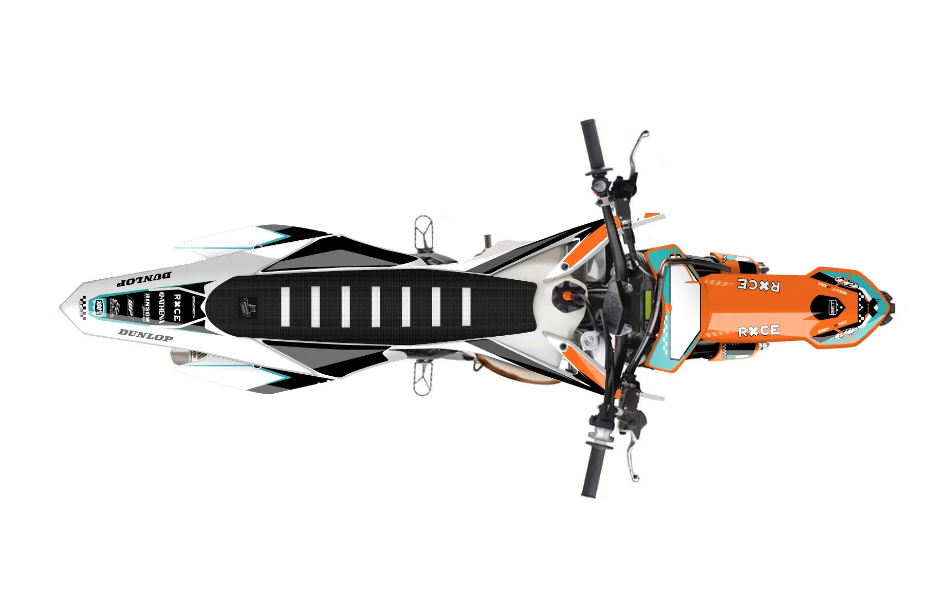 «Rutted» — готовый комплект графики серии Staple для KTM MX Graphic Kit KTM SX 250 2013. В комплекте: графика на бак и боковые облицовки, крылья (переднее и заднее), передний щиток, номерные таблички, защита вилки. Материал: ПВХ-винил 80 мкр с холодной ламинацией 300 мкр, общая толщина 380 мкр; покрытие глянцевое или матовое на выбор. Устойчив к UV-излучению, воде, бензину и мойке высокого давления. Клей акриловый на сольвентной основе — постоянный, для гибких пластиков. На простых поверхностях монтируется без нагрева; для сложных изгибов рекомендуем фен. Этот пресет можно заказать как есть или взять за основу в конструкторе: поменять цвета, добавить стартовый номер и свой бренд. Производство — 3–5 рабочих дней, доставка по России СДЭКом или Почтой, по СНГ — курьерскими службами.