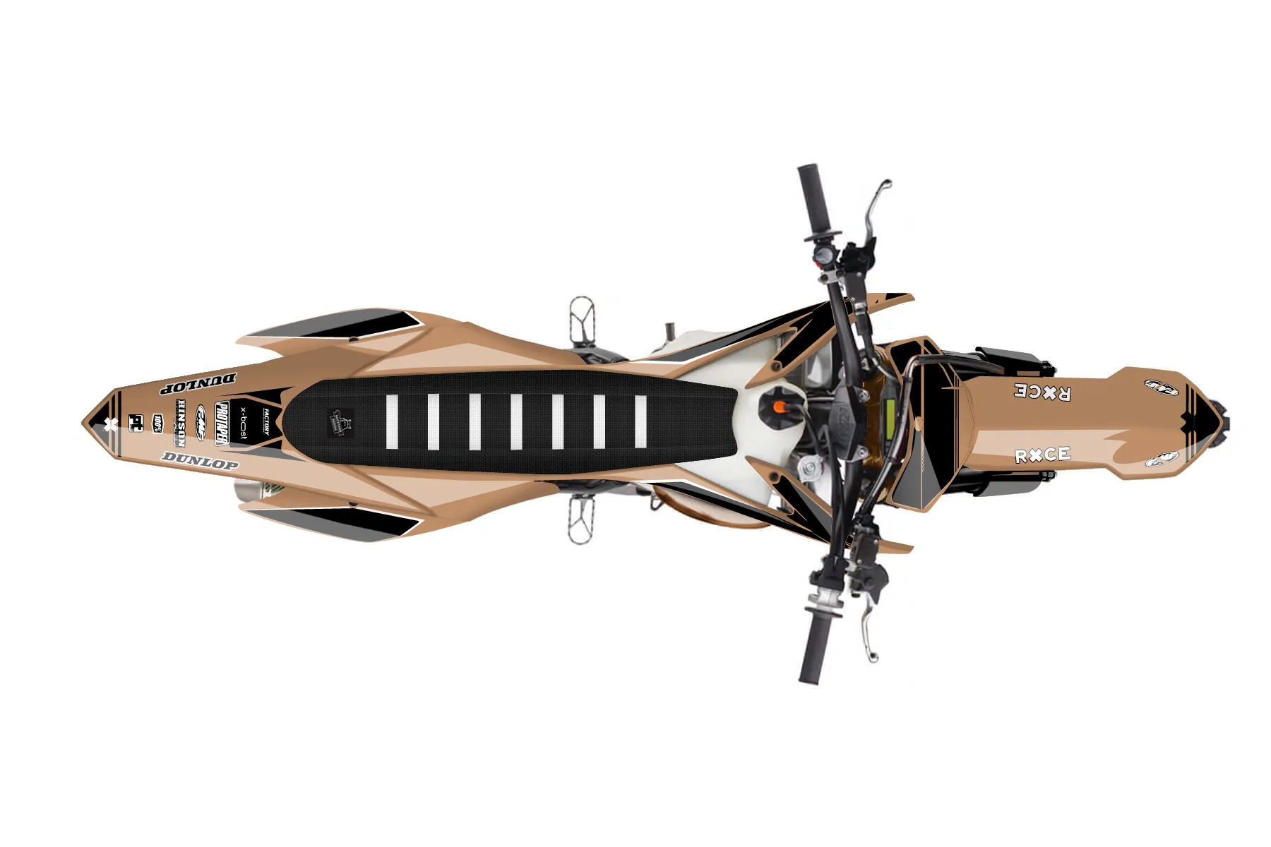 «Entire» — готовый комплект графики серии Untucked для KTM MX Graphic Kit KTM SX 250 2013. В комплекте: графика на бак и боковые облицовки, крылья (переднее и заднее), передний щиток, номерные таблички, защита вилки. Материал: ПВХ-винил 80 мкр с холодной ламинацией 300 мкр, общая толщина 380 мкр; покрытие глянцевое или матовое на выбор. Устойчив к UV-излучению, воде, бензину и мойке высокого давления. Клей акриловый на сольвентной основе — постоянный, для гибких пластиков. На простых поверхностях монтируется без нагрева; для сложных изгибов рекомендуем фен. Этот пресет можно заказать как есть или взять за основу в конструкторе: поменять цвета, добавить стартовый номер и свой бренд. Производство — 3–5 рабочих дней, доставка по России СДЭКом или Почтой, по СНГ — курьерскими службами.