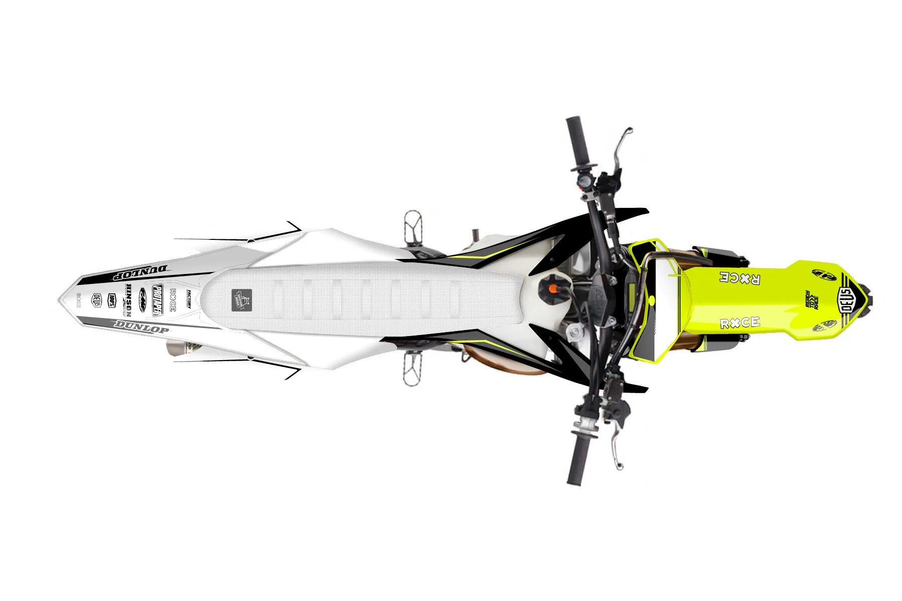 «Ride Neon» — готовый комплект графики серии Untucked для KTM MX Graphic Kit KTM SX 250 2013. В комплекте: графика на бак и боковые облицовки, крылья (переднее и заднее), передний щиток, номерные таблички, защита вилки. Материал: ПВХ-винил 80 мкр с холодной ламинацией 300 мкр, общая толщина 380 мкр; покрытие глянцевое или матовое на выбор. Устойчив к UV-излучению, воде, бензину и мойке высокого давления. Клей акриловый на сольвентной основе — постоянный, для гибких пластиков. На простых поверхностях монтируется без нагрева; для сложных изгибов рекомендуем фен. Этот пресет можно заказать как есть или взять за основу в конструкторе: поменять цвета, добавить стартовый номер и свой бренд. Производство — 3–5 рабочих дней, доставка по России СДЭКом или Почтой, по СНГ — курьерскими службами.