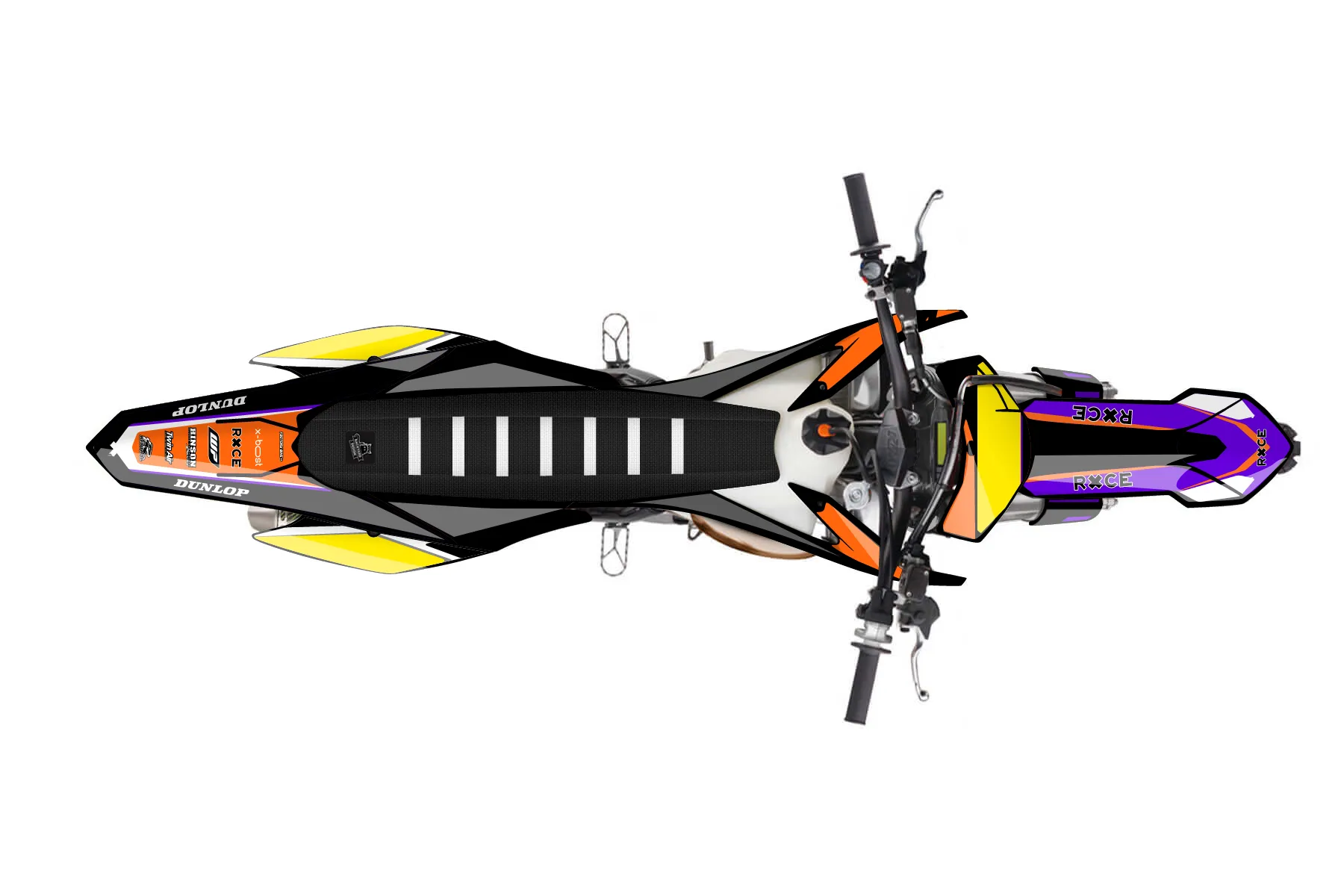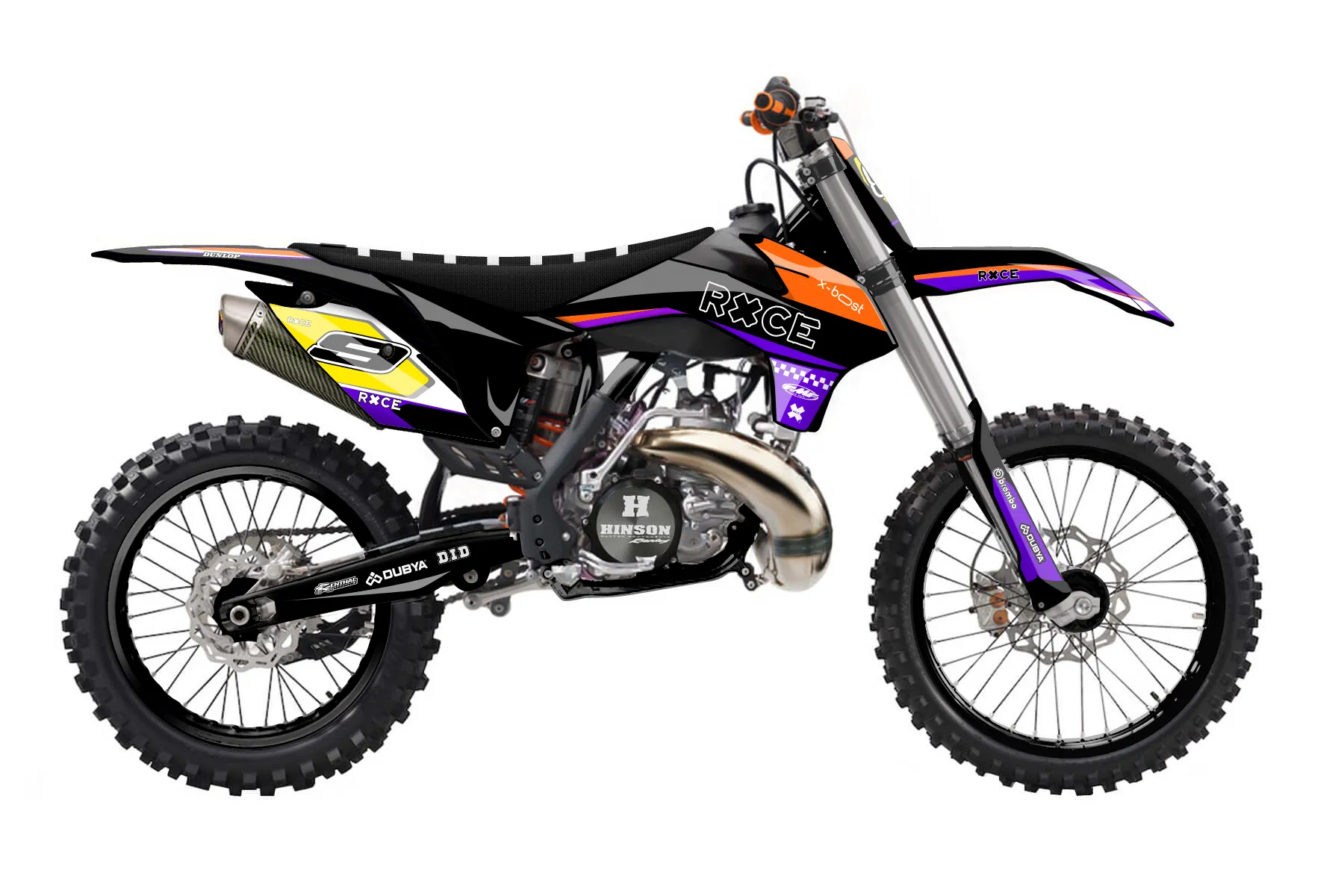 «Ehh 2.0» — готовый комплект графики серии Flow для KTM MX Graphic Kit KTM SX 250 2015. В комплекте: графика на бак и боковые облицовки, крылья (переднее и заднее), передний щиток, номерные таблички, защита вилки. Материал: ПВХ-винил 80 мкр с холодной ламинацией 300 мкр, общая толщина 380 мкр; покрытие глянцевое или матовое на выбор. Устойчив к UV-излучению, воде, бензину и мойке высокого давления. Клей акриловый на сольвентной основе — постоянный, для гибких пластиков. На простых поверхностях монтируется без нагрева; для сложных изгибов рекомендуем фен. Этот пресет можно заказать как есть или взять за основу в конструкторе: поменять цвета, добавить стартовый номер и свой бренд. Производство — 3–5 рабочих дней, доставка по России СДЭКом или Почтой, по СНГ — курьерскими службами.