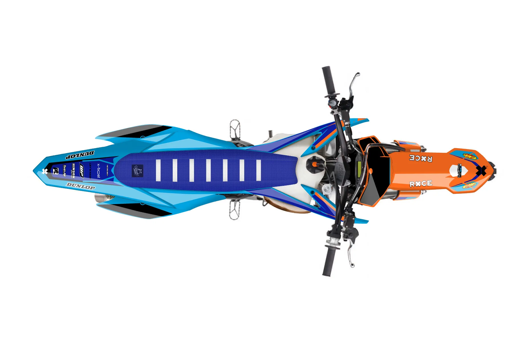 «Signature» — готовый комплект графики серии Flow для KTM MX Graphic Kit KTM SX 250 2015. В комплекте: графика на бак и боковые облицовки, крылья (переднее и заднее), передний щиток, номерные таблички, защита вилки. Материал: ПВХ-винил 80 мкр с холодной ламинацией 300 мкр, общая толщина 380 мкр; покрытие глянцевое или матовое на выбор. Устойчив к UV-излучению, воде, бензину и мойке высокого давления. Клей акриловый на сольвентной основе — постоянный, для гибких пластиков. На простых поверхностях монтируется без нагрева; для сложных изгибов рекомендуем фен. Этот пресет можно заказать как есть или взять за основу в конструкторе: поменять цвета, добавить стартовый номер и свой бренд. Производство — 3–5 рабочих дней, доставка по России СДЭКом или Почтой, по СНГ — курьерскими службами.