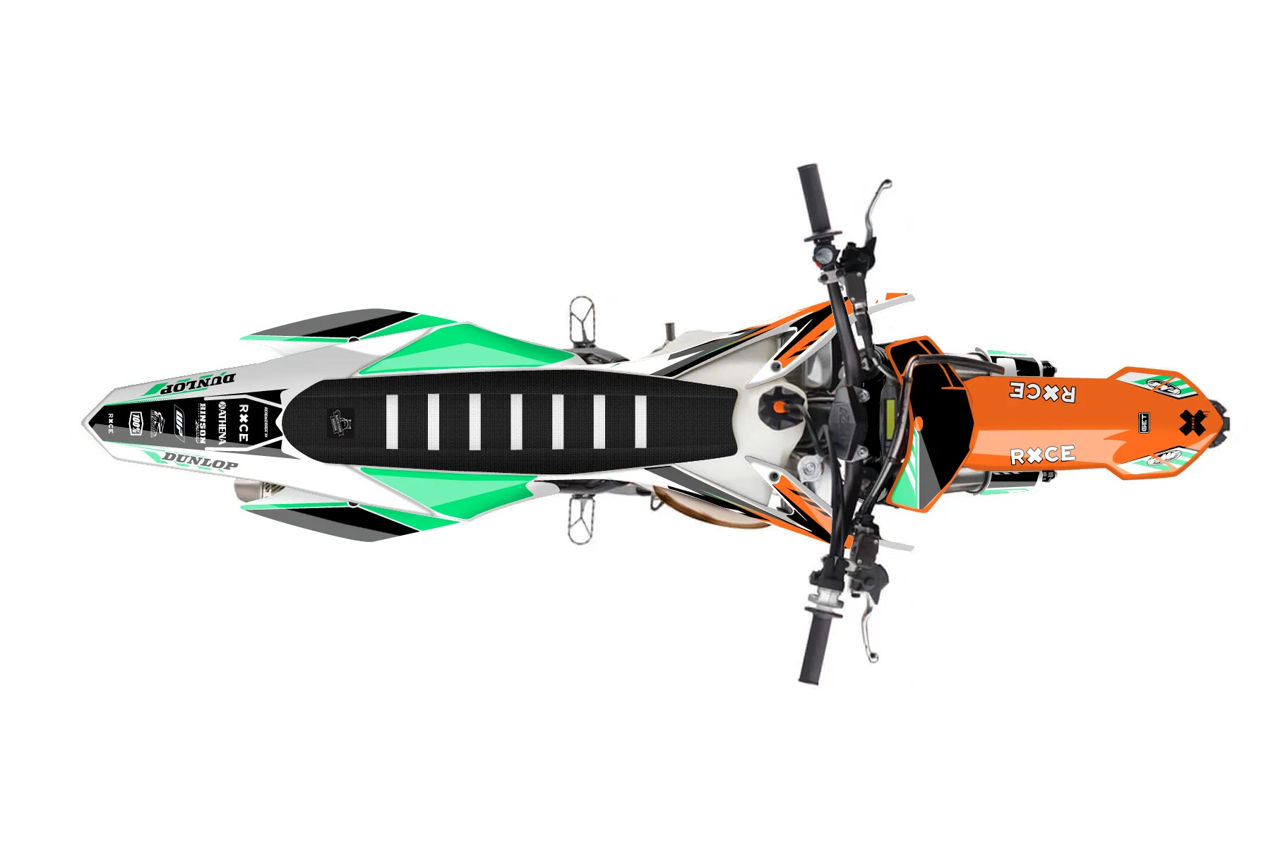 «Future» — готовый комплект графики серии Maverick для KTM MX Graphic Kit KTM SX 250 2015. В комплекте: графика на бак и боковые облицовки, крылья (переднее и заднее), передний щиток, номерные таблички, защита вилки. Материал: ПВХ-винил 80 мкр с холодной ламинацией 300 мкр, общая толщина 380 мкр; покрытие глянцевое или матовое на выбор. Устойчив к UV-излучению, воде, бензину и мойке высокого давления. Клей акриловый на сольвентной основе — постоянный, для гибких пластиков. На простых поверхностях монтируется без нагрева; для сложных изгибов рекомендуем фен. Этот пресет можно заказать как есть или взять за основу в конструкторе: поменять цвета, добавить стартовый номер и свой бренд. Производство — 3–5 рабочих дней, доставка по России СДЭКом или Почтой, по СНГ — курьерскими службами.