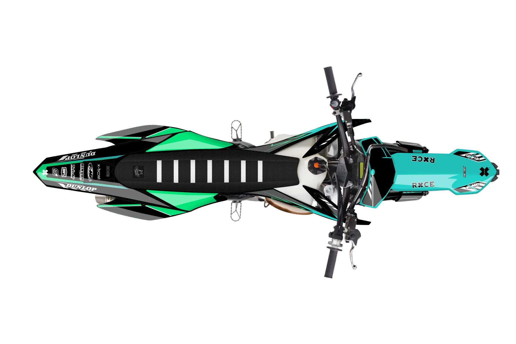 «Refuse» — готовый комплект графики серии Maverick для KTM MX Graphic Kit KTM SX 250 2015. В комплекте: графика на бак и боковые облицовки, крылья (переднее и заднее), передний щиток, номерные таблички, защита вилки. Материал: ПВХ-винил 80 мкр с холодной ламинацией 300 мкр, общая толщина 380 мкр; покрытие глянцевое или матовое на выбор. Устойчив к UV-излучению, воде, бензину и мойке высокого давления. Клей акриловый на сольвентной основе — постоянный, для гибких пластиков. На простых поверхностях монтируется без нагрева; для сложных изгибов рекомендуем фен. Этот пресет можно заказать как есть или взять за основу в конструкторе: поменять цвета, добавить стартовый номер и свой бренд. Производство — 3–5 рабочих дней, доставка по России СДЭКом или Почтой, по СНГ — курьерскими службами.
