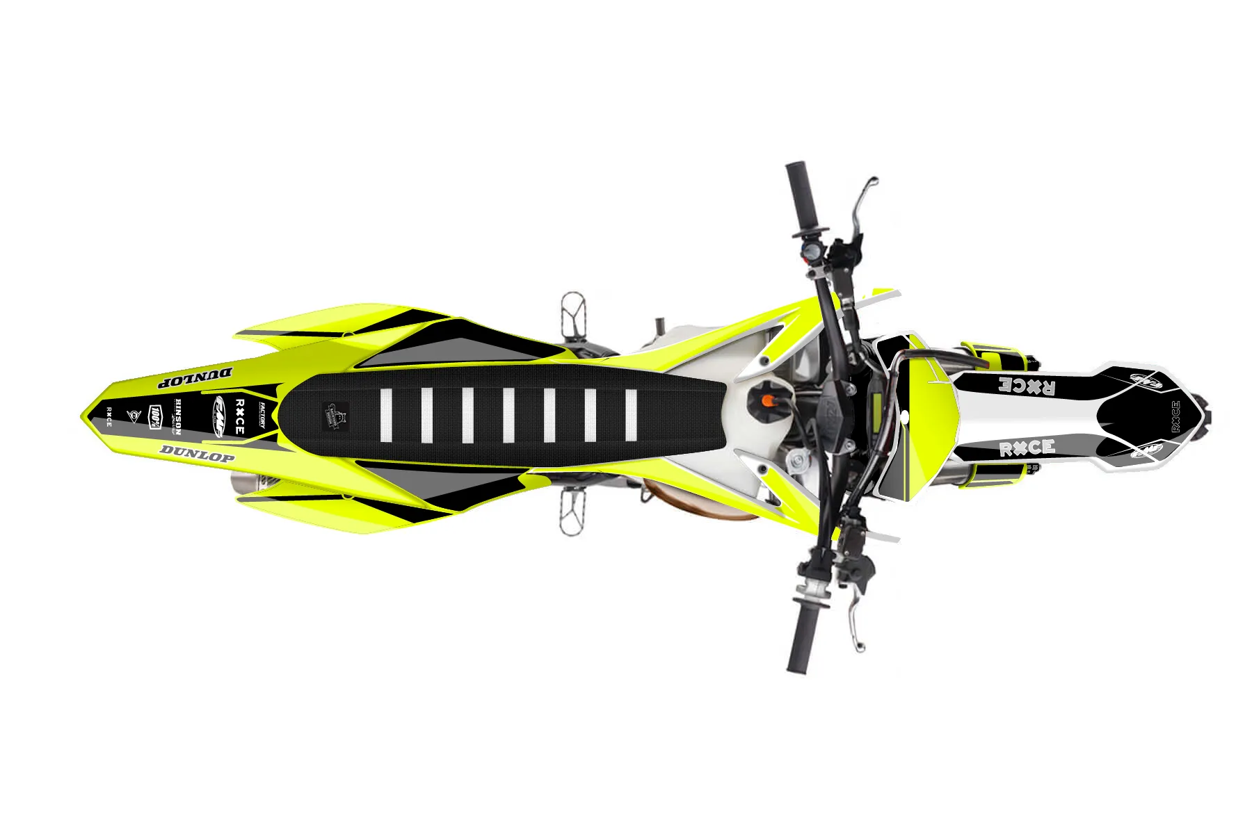 «Ryder Neon» — готовый комплект графики серии Maverick для KTM MX Graphic Kit KTM SX 250 2015. В комплекте: графика на бак и боковые облицовки, крылья (переднее и заднее), передний щиток, номерные таблички, защита вилки. Материал: ПВХ-винил 80 мкр с холодной ламинацией 300 мкр, общая толщина 380 мкр; покрытие глянцевое или матовое на выбор. Устойчив к UV-излучению, воде, бензину и мойке высокого давления. Клей акриловый на сольвентной основе — постоянный, для гибких пластиков. На простых поверхностях монтируется без нагрева; для сложных изгибов рекомендуем фен. Этот пресет можно заказать как есть или взять за основу в конструкторе: поменять цвета, добавить стартовый номер и свой бренд. Производство — 3–5 рабочих дней, доставка по России СДЭКом или Почтой, по СНГ — курьерскими службами.