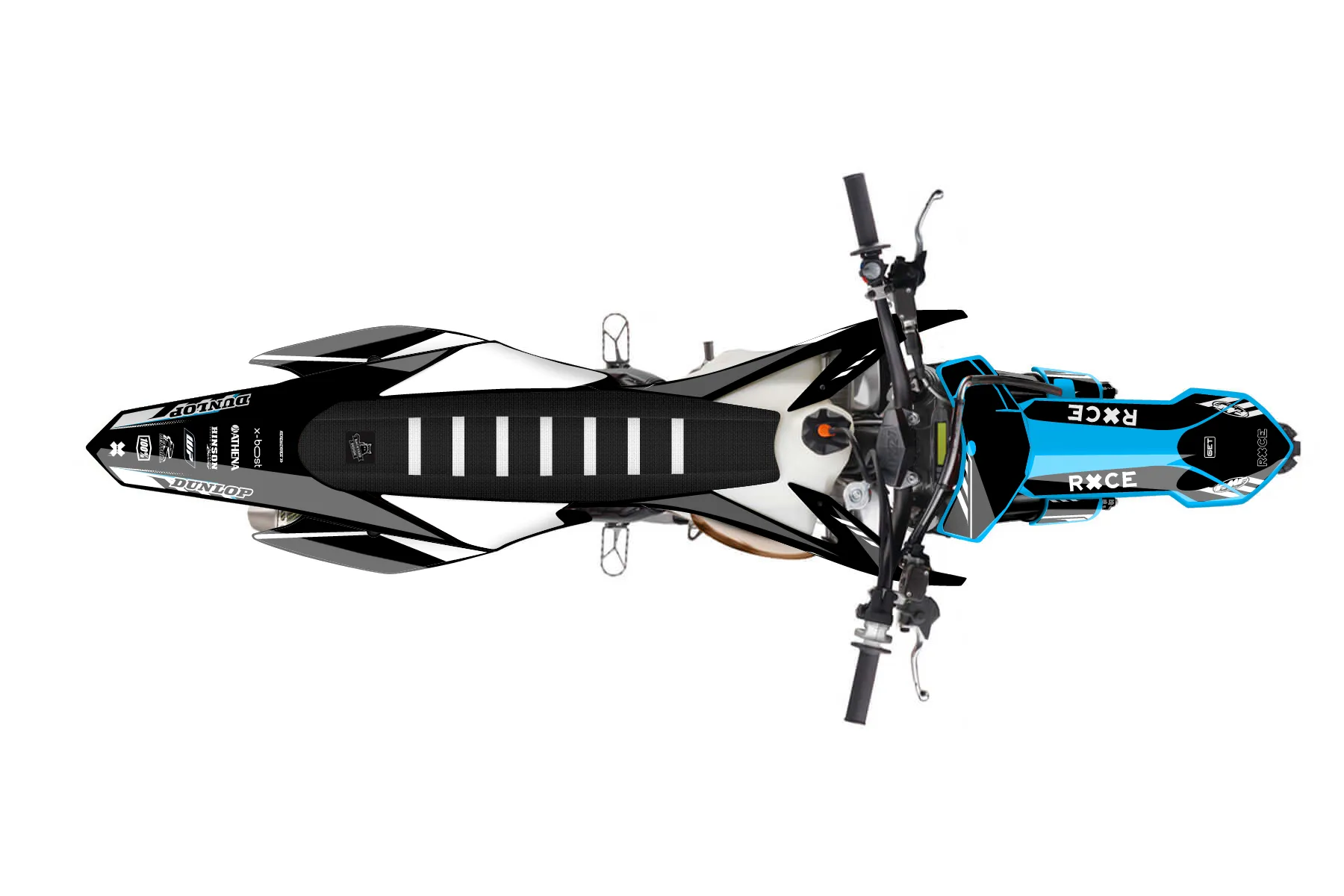 «Swirl» — готовый комплект графики серии Maverick для KTM MX Graphic Kit KTM SX 250 2015. В комплекте: графика на бак и боковые облицовки, крылья (переднее и заднее), передний щиток, номерные таблички, защита вилки. Материал: ПВХ-винил 80 мкр с холодной ламинацией 300 мкр, общая толщина 380 мкр; покрытие глянцевое или матовое на выбор. Устойчив к UV-излучению, воде, бензину и мойке высокого давления. Клей акриловый на сольвентной основе — постоянный, для гибких пластиков. На простых поверхностях монтируется без нагрева; для сложных изгибов рекомендуем фен. Этот пресет можно заказать как есть или взять за основу в конструкторе: поменять цвета, добавить стартовый номер и свой бренд. Производство — 3–5 рабочих дней, доставка по России СДЭКом или Почтой, по СНГ — курьерскими службами.