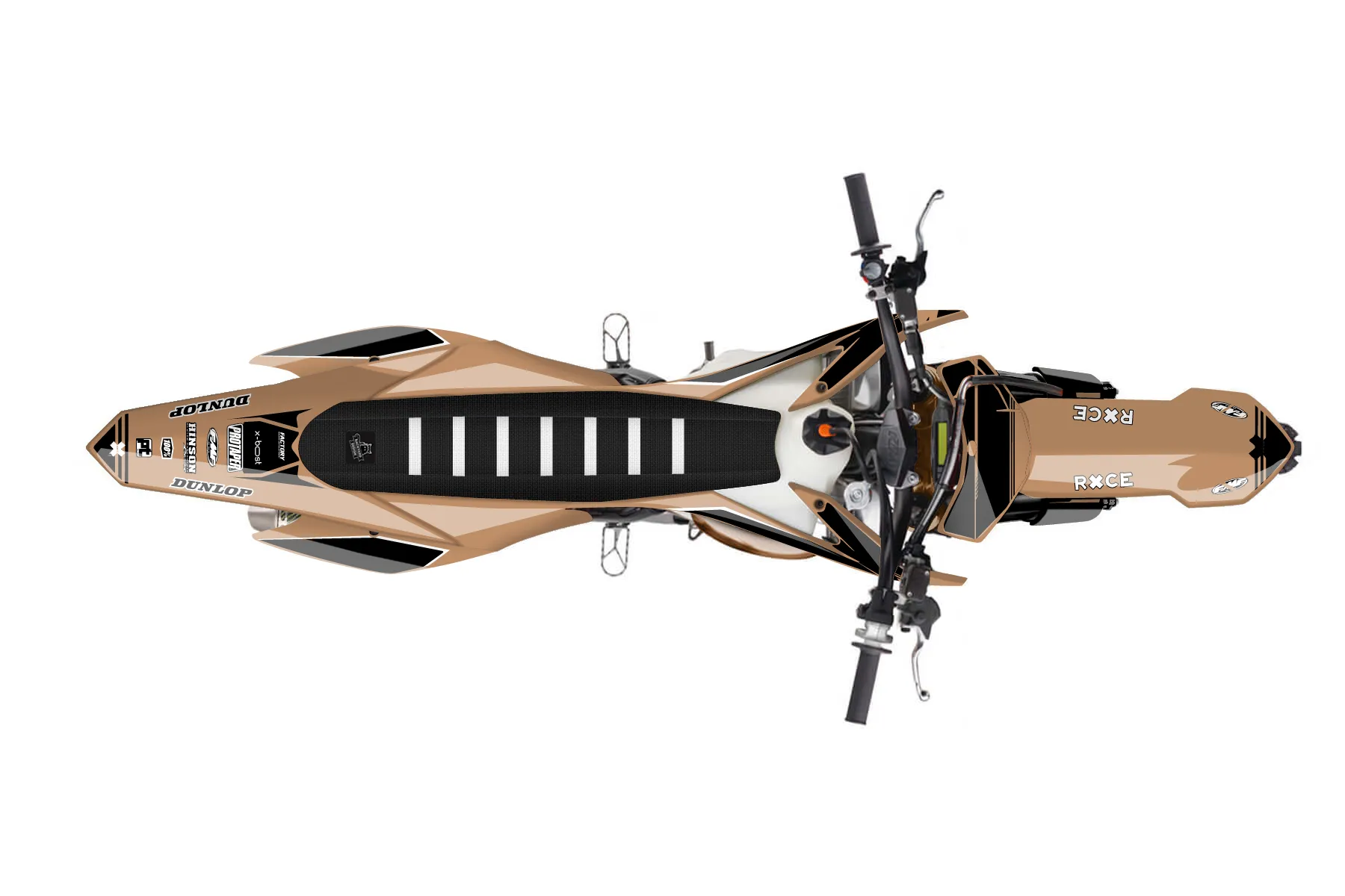 «Entire» — готовый комплект графики серии Untucked для KTM MX Graphic Kit KTM SX 250 2015. В комплекте: графика на бак и боковые облицовки, крылья (переднее и заднее), передний щиток, номерные таблички, защита вилки. Материал: ПВХ-винил 80 мкр с холодной ламинацией 300 мкр, общая толщина 380 мкр; покрытие глянцевое или матовое на выбор. Устойчив к UV-излучению, воде, бензину и мойке высокого давления. Клей акриловый на сольвентной основе — постоянный, для гибких пластиков. На простых поверхностях монтируется без нагрева; для сложных изгибов рекомендуем фен. Этот пресет можно заказать как есть или взять за основу в конструкторе: поменять цвета, добавить стартовый номер и свой бренд. Производство — 3–5 рабочих дней, доставка по России СДЭКом или Почтой, по СНГ — курьерскими службами.