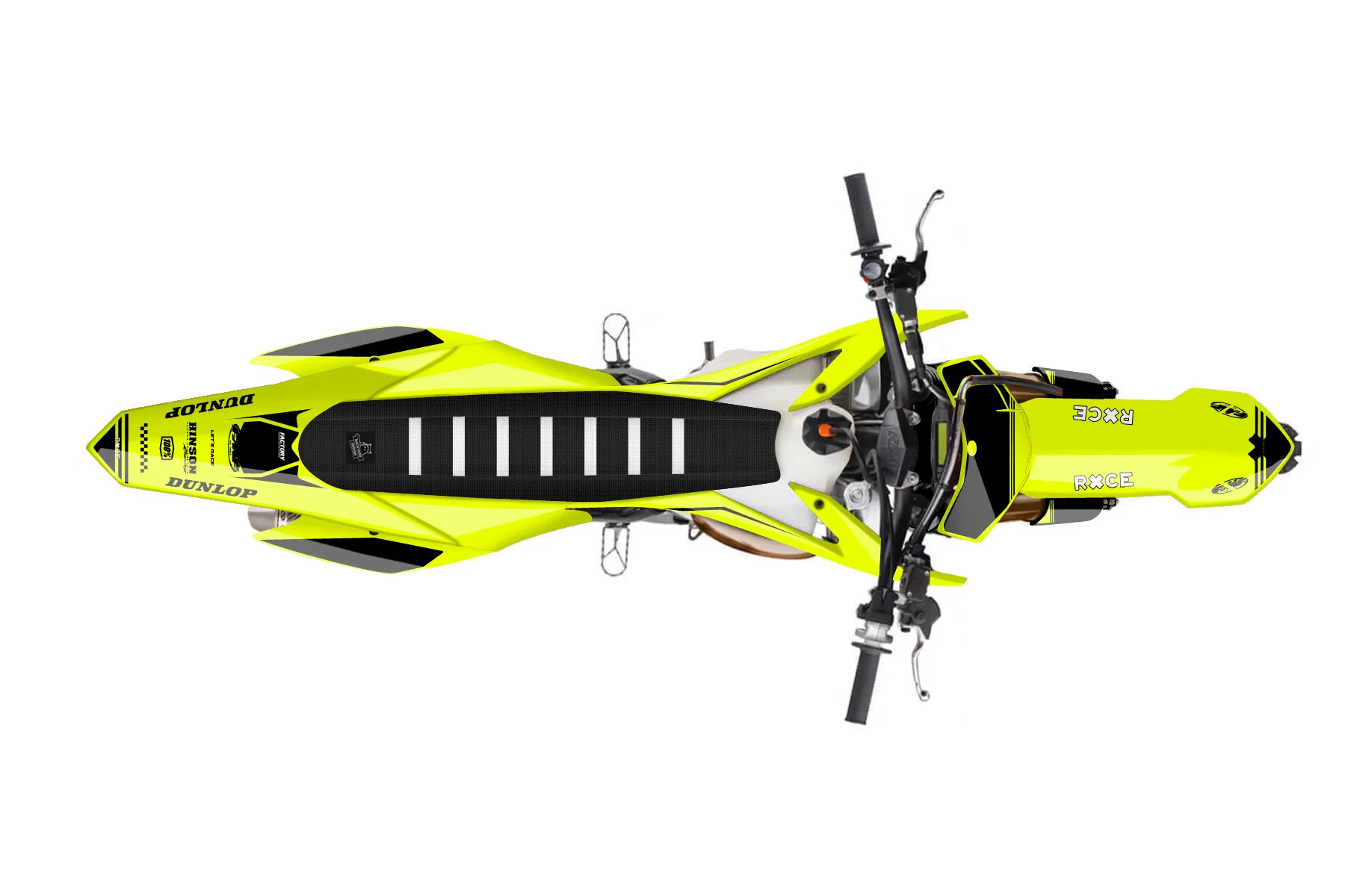 «Loose Neon» — готовый комплект графики серии Untucked для KTM MX Graphic Kit KTM SX 250 2015. В комплекте: графика на бак и боковые облицовки, крылья (переднее и заднее), передний щиток, номерные таблички, защита вилки. Материал: ПВХ-винил 80 мкр с холодной ламинацией 300 мкр, общая толщина 380 мкр; покрытие глянцевое или матовое на выбор. Устойчив к UV-излучению, воде, бензину и мойке высокого давления. Клей акриловый на сольвентной основе — постоянный, для гибких пластиков. На простых поверхностях монтируется без нагрева; для сложных изгибов рекомендуем фен. Этот пресет можно заказать как есть или взять за основу в конструкторе: поменять цвета, добавить стартовый номер и свой бренд. Производство — 3–5 рабочих дней, доставка по России СДЭКом или Почтой, по СНГ — курьерскими службами.