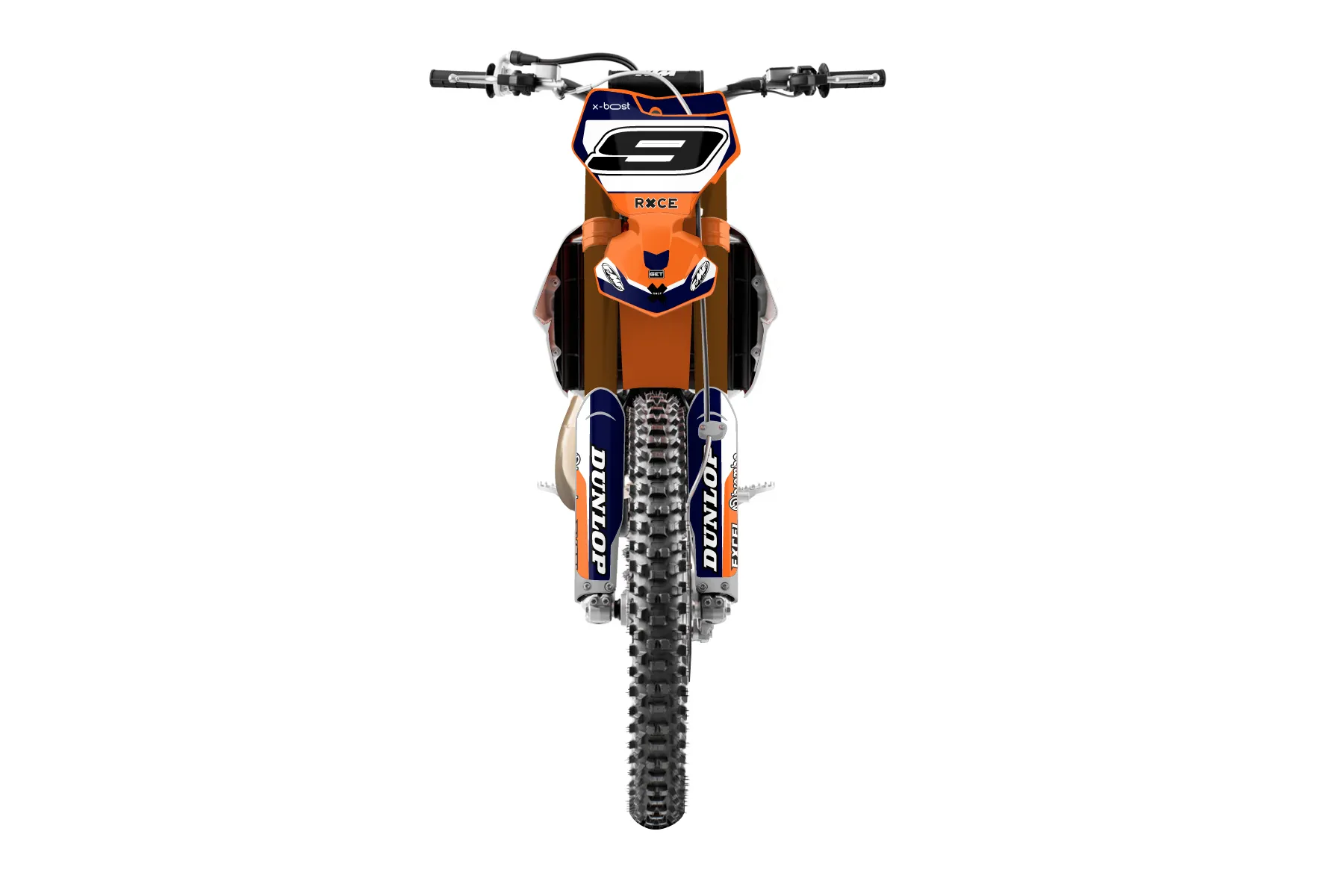 «Moto» — готовый комплект графики серии Flow для KTM MX Graphic Kit KTM SX 250 2017. В комплекте: графика на бак и боковые облицовки, крылья (переднее и заднее), передний щиток, номерные таблички, защита вилки. Материал: ПВХ-винил 80 мкр с холодной ламинацией 300 мкр, общая толщина 380 мкр; покрытие глянцевое или матовое на выбор. Устойчив к UV-излучению, воде, бензину и мойке высокого давления. Клей акриловый на сольвентной основе — постоянный, для гибких пластиков. На простых поверхностях монтируется без нагрева; для сложных изгибов рекомендуем фен. Этот пресет можно заказать как есть или взять за основу в конструкторе: поменять цвета, добавить стартовый номер и свой бренд. Производство — 3–5 рабочих дней, доставка по России СДЭКом или Почтой, по СНГ — курьерскими службами.