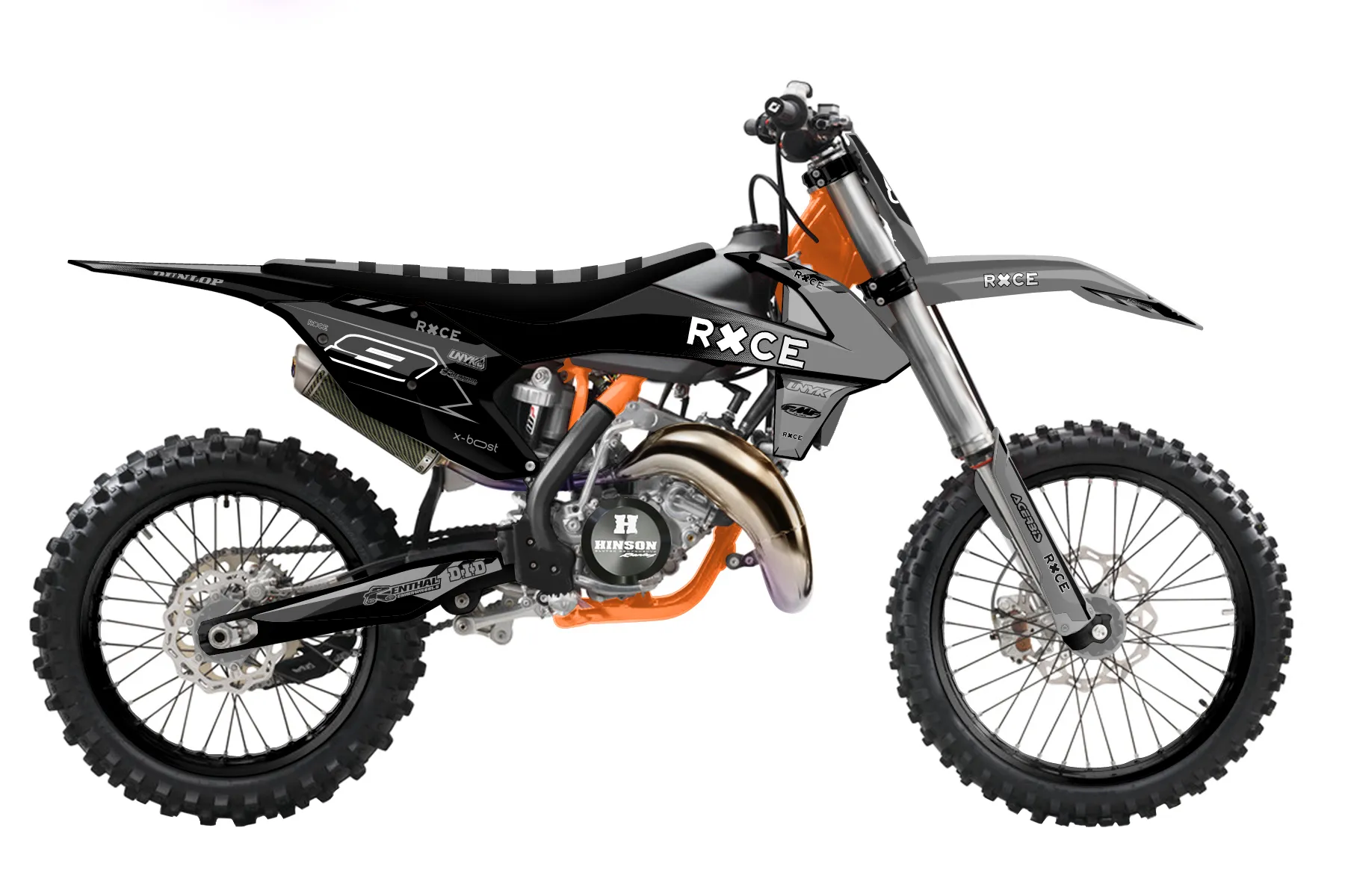 «Grip» — готовый комплект графики серии Maverick для KTM MX Graphic Kit KTM SX 250 2017. В комплекте: графика на бак и боковые облицовки, крылья (переднее и заднее), передний щиток, номерные таблички, защита вилки. Материал: ПВХ-винил 80 мкр с холодной ламинацией 300 мкр, общая толщина 380 мкр; покрытие глянцевое или матовое на выбор. Устойчив к UV-излучению, воде, бензину и мойке высокого давления. Клей акриловый на сольвентной основе — постоянный, для гибких пластиков. На простых поверхностях монтируется без нагрева; для сложных изгибов рекомендуем фен. Этот пресет можно заказать как есть или взять за основу в конструкторе: поменять цвета, добавить стартовый номер и свой бренд. Производство — 3–5 рабочих дней, доставка по России СДЭКом или Почтой, по СНГ — курьерскими службами.