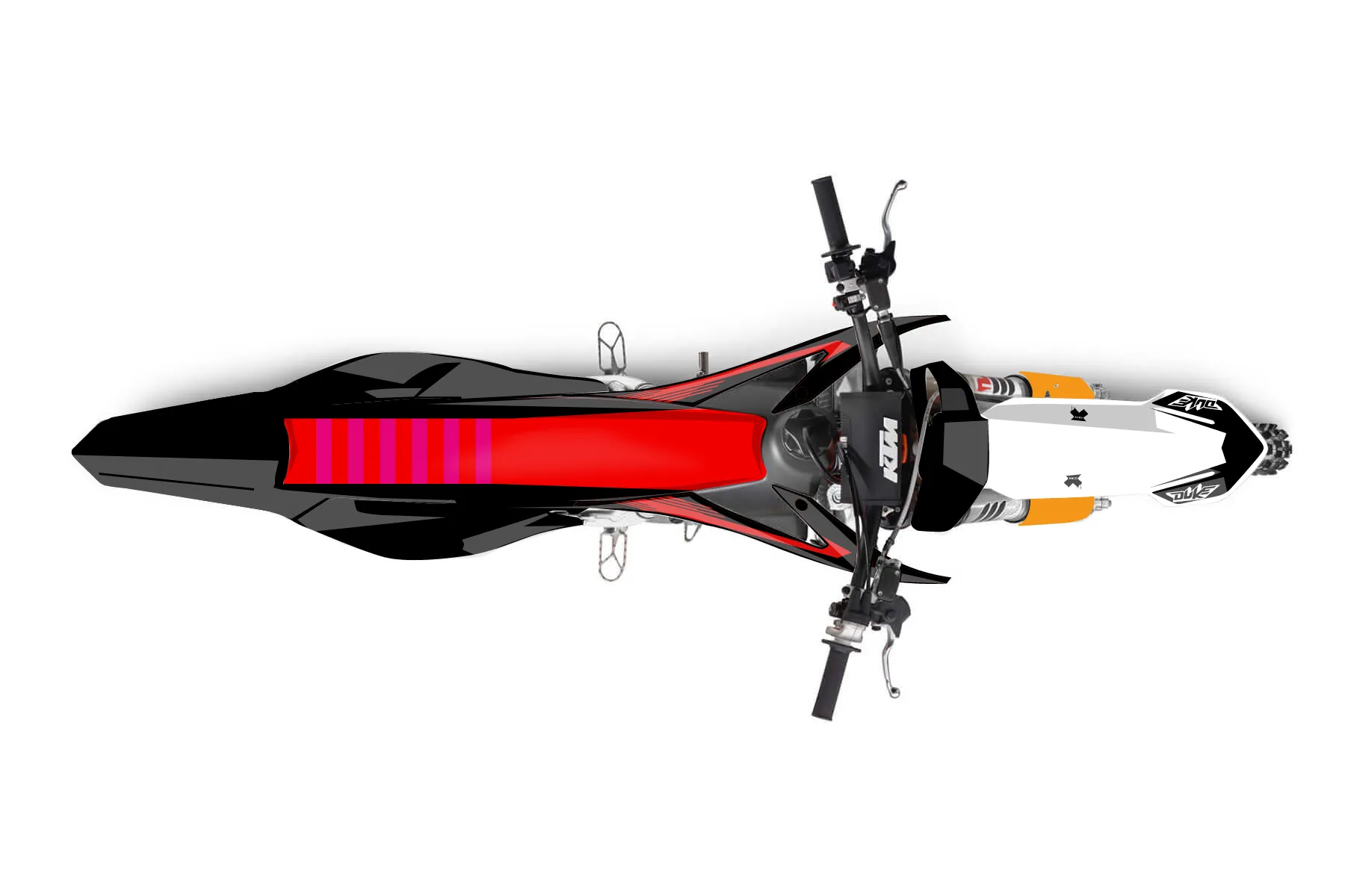 «KtmDuke390 Graphics Red» — готовый комплект графики серии Replica для KTM MX Graphic Kit KTM SX 250 2017. В комплекте: графика на бак и боковые облицовки, крылья (переднее и заднее), передний щиток, номерные таблички, защита вилки. Материал: ПВХ-винил 80 мкр с холодной ламинацией 300 мкр, общая толщина 380 мкр; покрытие глянцевое или матовое на выбор. Устойчив к UV-излучению, воде, бензину и мойке высокого давления. Клей акриловый на сольвентной основе — постоянный, для гибких пластиков. На простых поверхностях монтируется без нагрева; для сложных изгибов рекомендуем фен. Этот пресет можно заказать как есть или взять за основу в конструкторе: поменять цвета, добавить стартовый номер и свой бренд. Производство — 3–5 рабочих дней, доставка по России СДЭКом или Почтой, по СНГ — курьерскими службами.