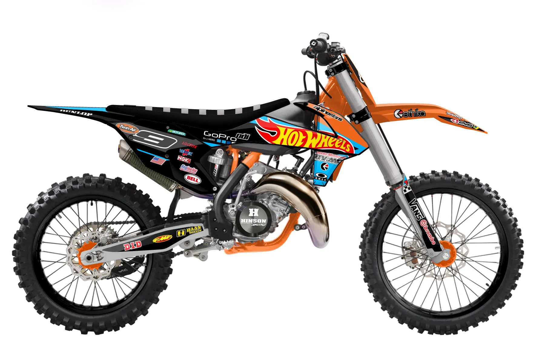 «Final Hot Wheels Design» — готовый комплект графики серии Staple для KTM MX Graphic Kit KTM SX 250 2017. В комплекте: графика на бак и боковые облицовки, крылья (переднее и заднее), передний щиток, номерные таблички, защита вилки. Материал: ПВХ-винил 80 мкр с холодной ламинацией 300 мкр, общая толщина 380 мкр; покрытие глянцевое или матовое на выбор. Устойчив к UV-излучению, воде, бензину и мойке высокого давления. Клей акриловый на сольвентной основе — постоянный, для гибких пластиков. На простых поверхностях монтируется без нагрева; для сложных изгибов рекомендуем фен. Этот пресет можно заказать как есть или взять за основу в конструкторе: поменять цвета, добавить стартовый номер и свой бренд. Производство — 3–5 рабочих дней, доставка по России СДЭКом или Почтой, по СНГ — курьерскими службами.