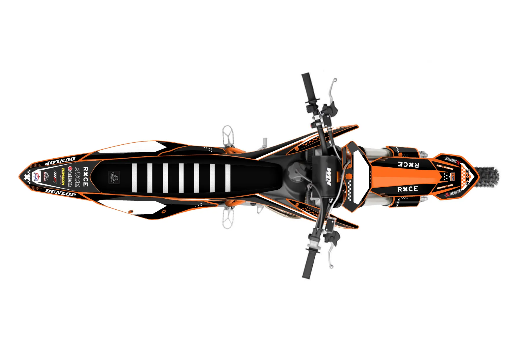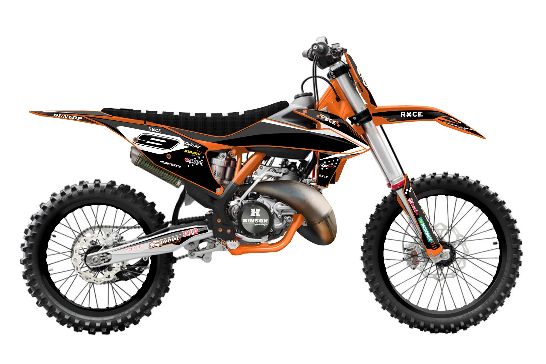 «Raw» — готовый комплект графики серии Staple для KTM MX Graphic Kit KTM SX 250 2019. В комплекте: графика на бак и боковые облицовки, крылья (переднее и заднее), передний щиток, номерные таблички, защита вилки. Материал: ПВХ-винил 80 мкр с холодной ламинацией 300 мкр, общая толщина 380 мкр; покрытие глянцевое или матовое на выбор. Устойчив к UV-излучению, воде, бензину и мойке высокого давления. Клей акриловый на сольвентной основе — постоянный, для гибких пластиков. На простых поверхностях монтируется без нагрева; для сложных изгибов рекомендуем фен. Этот пресет можно заказать как есть или взять за основу в конструкторе: поменять цвета, добавить стартовый номер и свой бренд. Производство — 3–5 рабочих дней, доставка по России СДЭКом или Почтой, по СНГ — курьерскими службами.