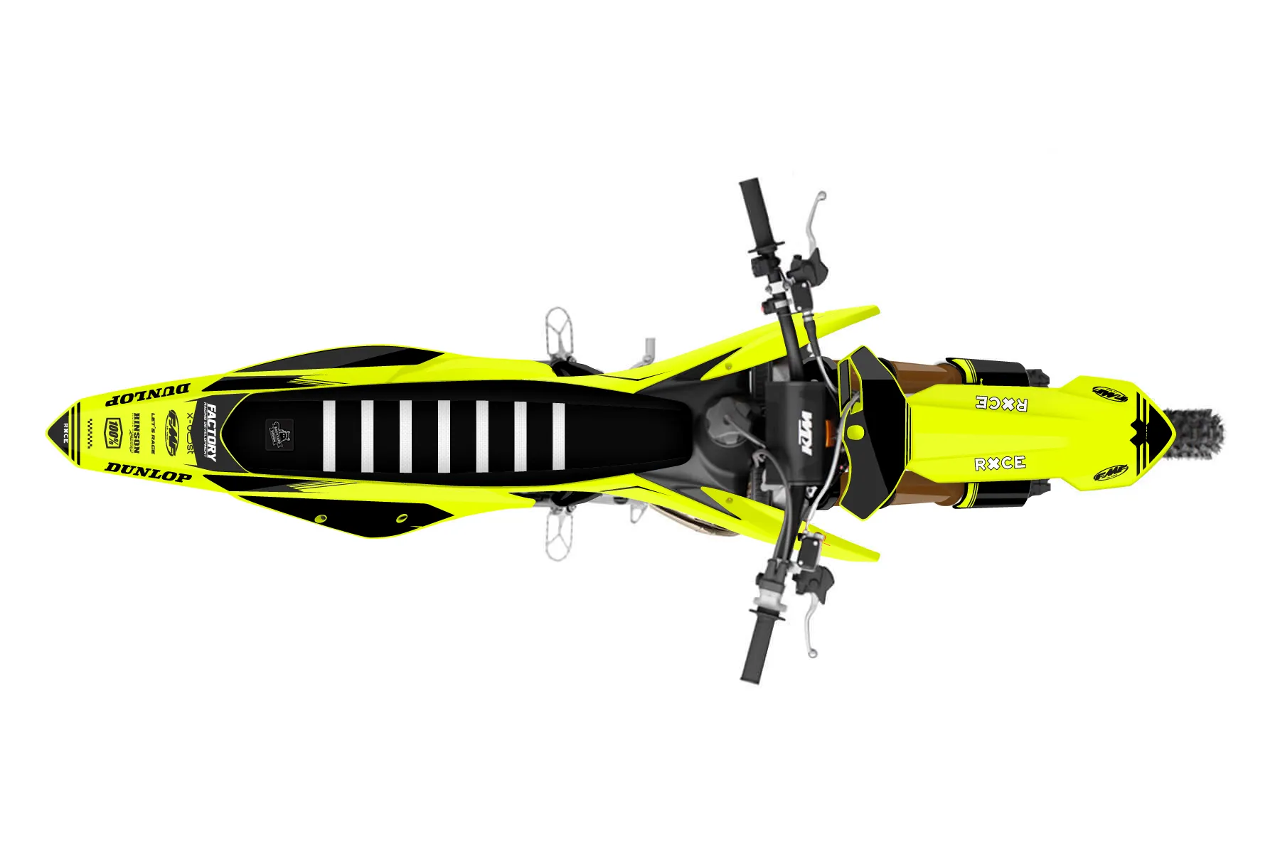 «Loose Neon» — готовый комплект графики серии Untucked для KTM MX Graphic Kit KTM SX 250 2019. В комплекте: графика на бак и боковые облицовки, крылья (переднее и заднее), передний щиток, номерные таблички, защита вилки. Материал: ПВХ-винил 80 мкр с холодной ламинацией 300 мкр, общая толщина 380 мкр; покрытие глянцевое или матовое на выбор. Устойчив к UV-излучению, воде, бензину и мойке высокого давления. Клей акриловый на сольвентной основе — постоянный, для гибких пластиков. На простых поверхностях монтируется без нагрева; для сложных изгибов рекомендуем фен. Этот пресет можно заказать как есть или взять за основу в конструкторе: поменять цвета, добавить стартовый номер и свой бренд. Производство — 3–5 рабочих дней, доставка по России СДЭКом или Почтой, по СНГ — курьерскими службами.