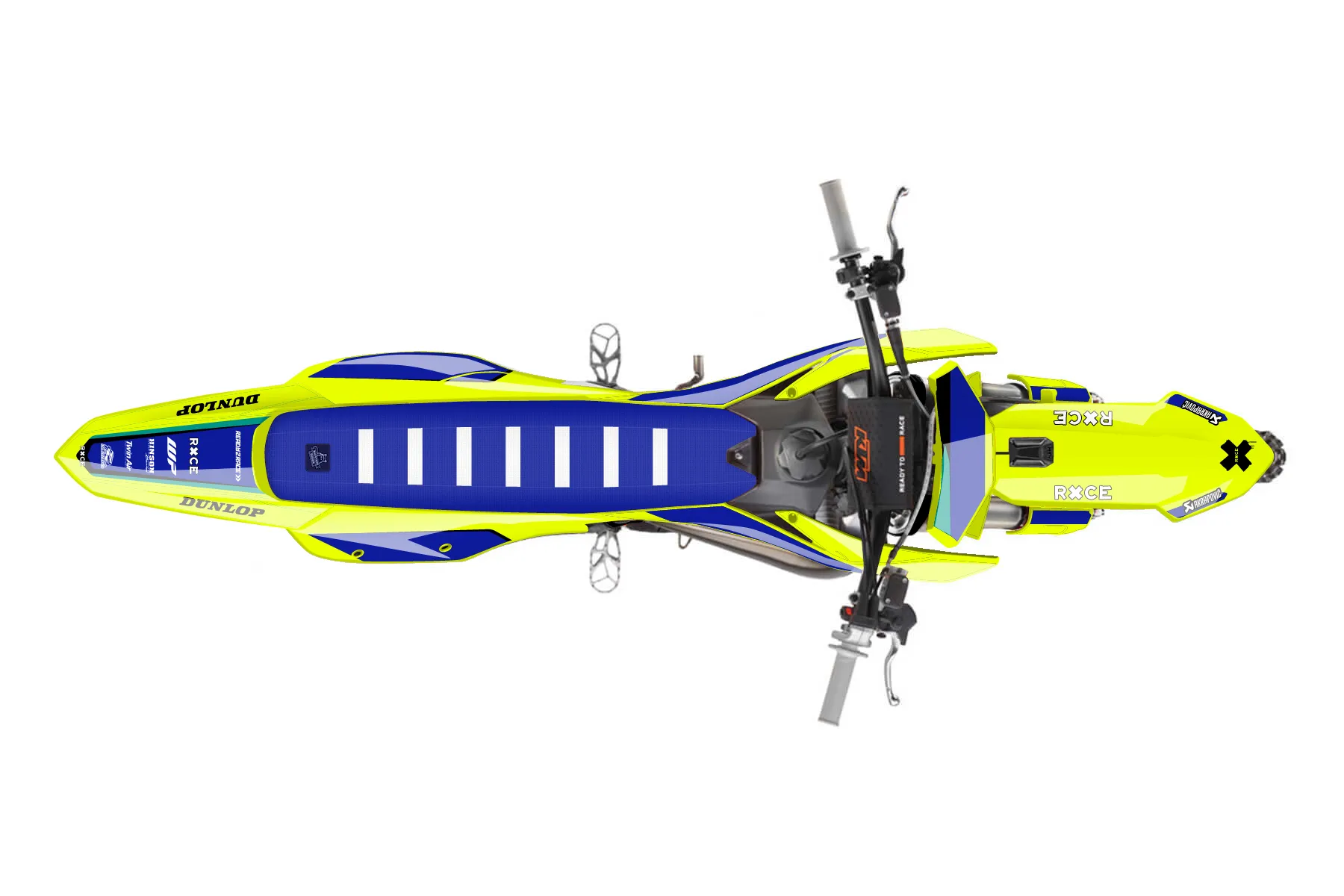 «Brilliant Neon» — готовый комплект графики серии Flow для KTM MX Graphic Kit KTM SX 250 2025. В комплекте: графика на бак и боковые облицовки, крылья (переднее и заднее), передний щиток, номерные таблички, защита вилки. Материал: ПВХ-винил 80 мкр с холодной ламинацией 300 мкр, общая толщина 380 мкр; покрытие глянцевое или матовое на выбор. Устойчив к UV-излучению, воде, бензину и мойке высокого давления. Клей акриловый на сольвентной основе — постоянный, для гибких пластиков. На простых поверхностях монтируется без нагрева; для сложных изгибов рекомендуем фен. Этот пресет можно заказать как есть или взять за основу в конструкторе: поменять цвета, добавить стартовый номер и свой бренд. Производство — 3–5 рабочих дней, доставка по России СДЭКом или Почтой, по СНГ — курьерскими службами.